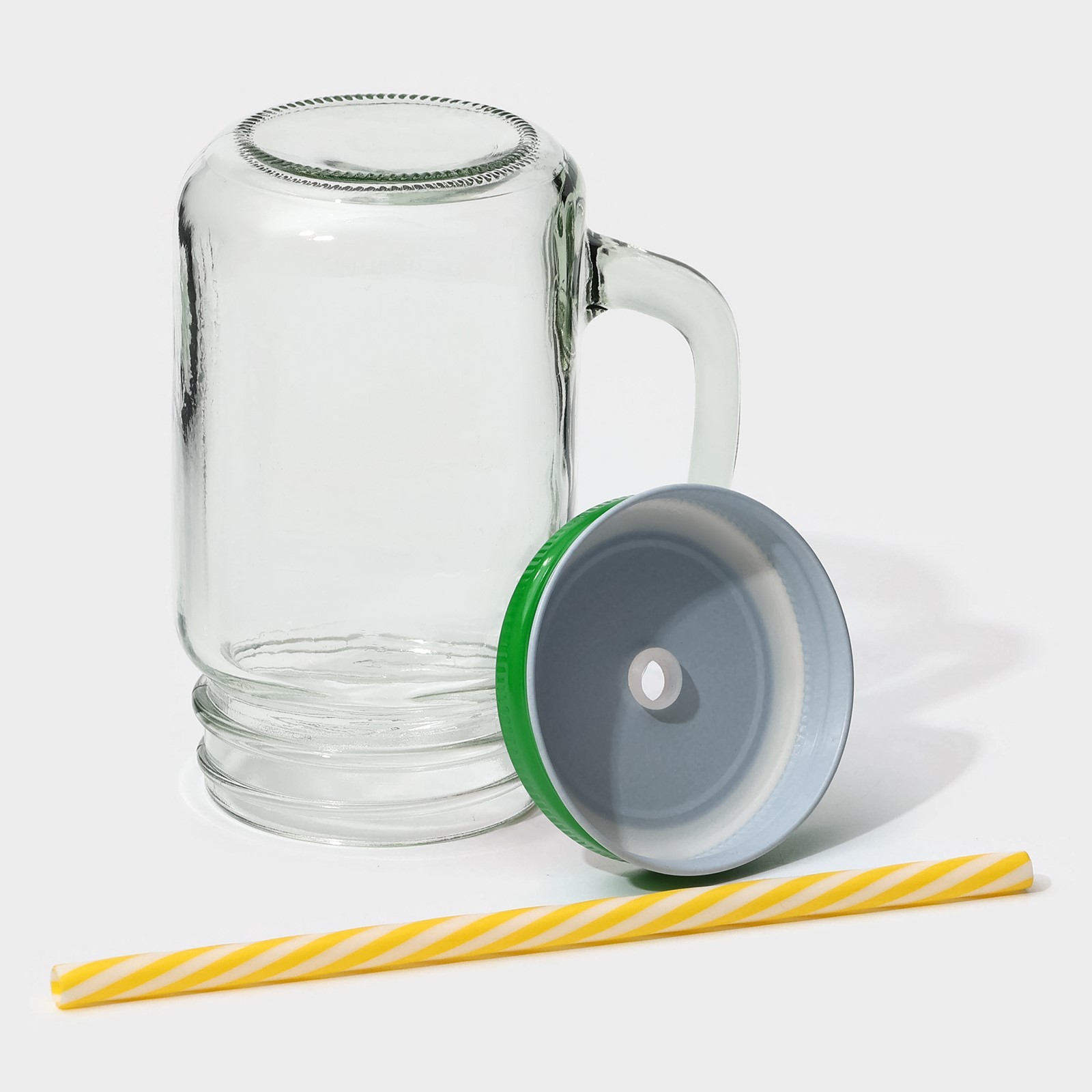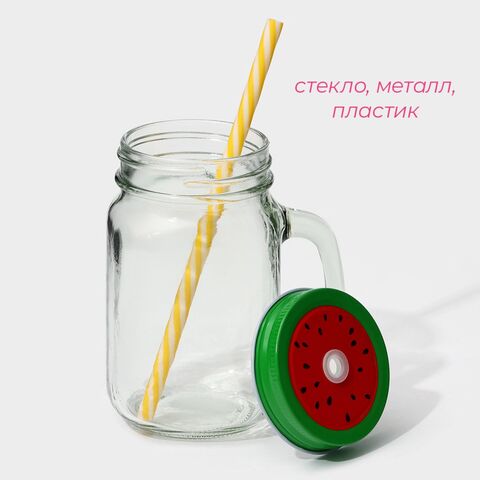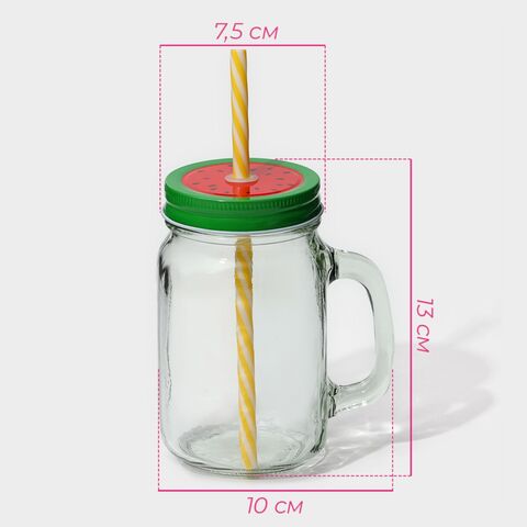 Доляна, банка стеклянная с крышкой и трубочкой, 450 мл, цвет МИКС