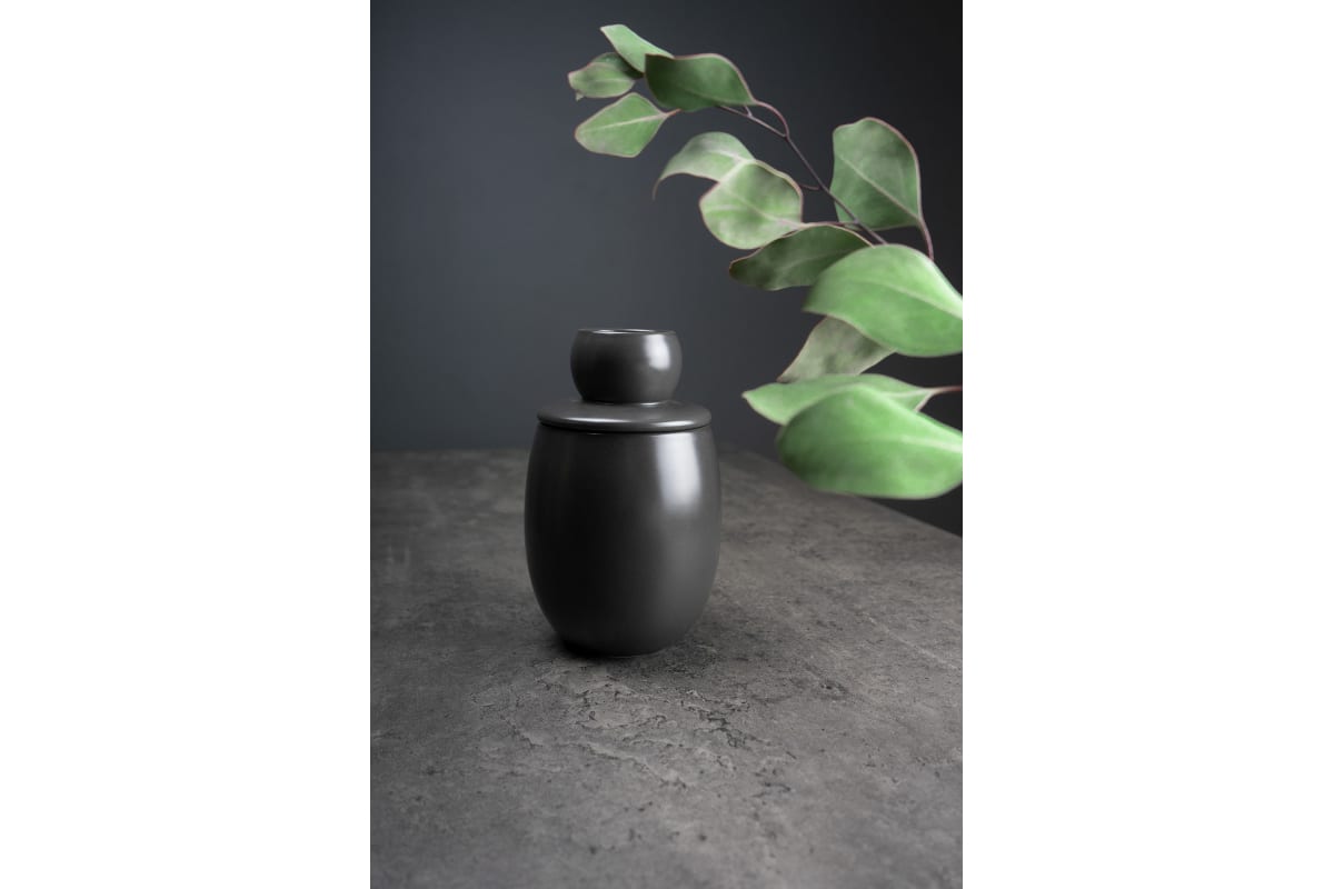 Изящная банка представлена в форме цилиндра с керамической крышкой