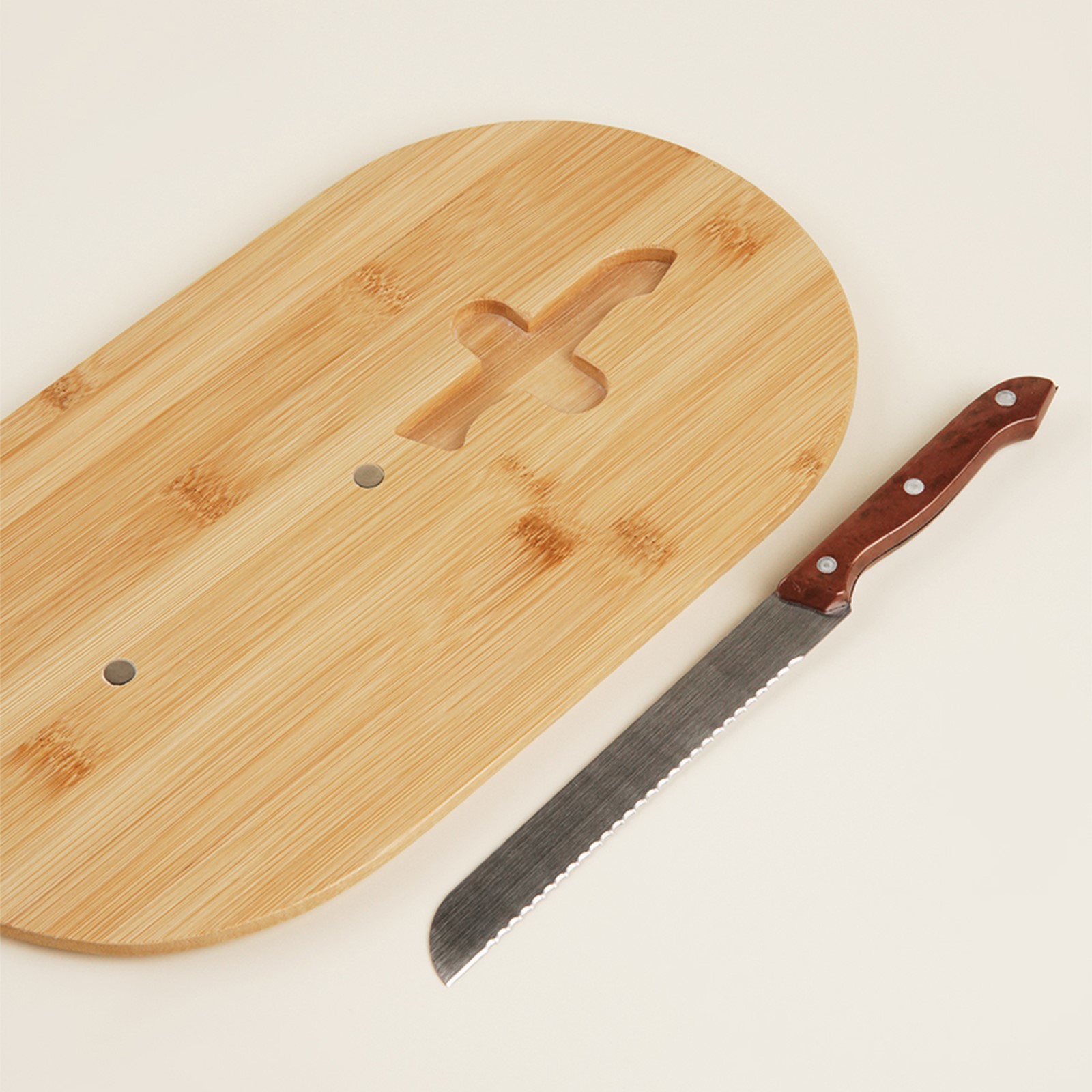Размеры хлебницы составляют 36x20x15,5 см, что позволяет удобно разместить её на вашей кухне. Нож, входящий в комплект, имеет длину 28,3 см и ширину 2 см. Он идеально подходит для нарезки хлеба и других продуктов.