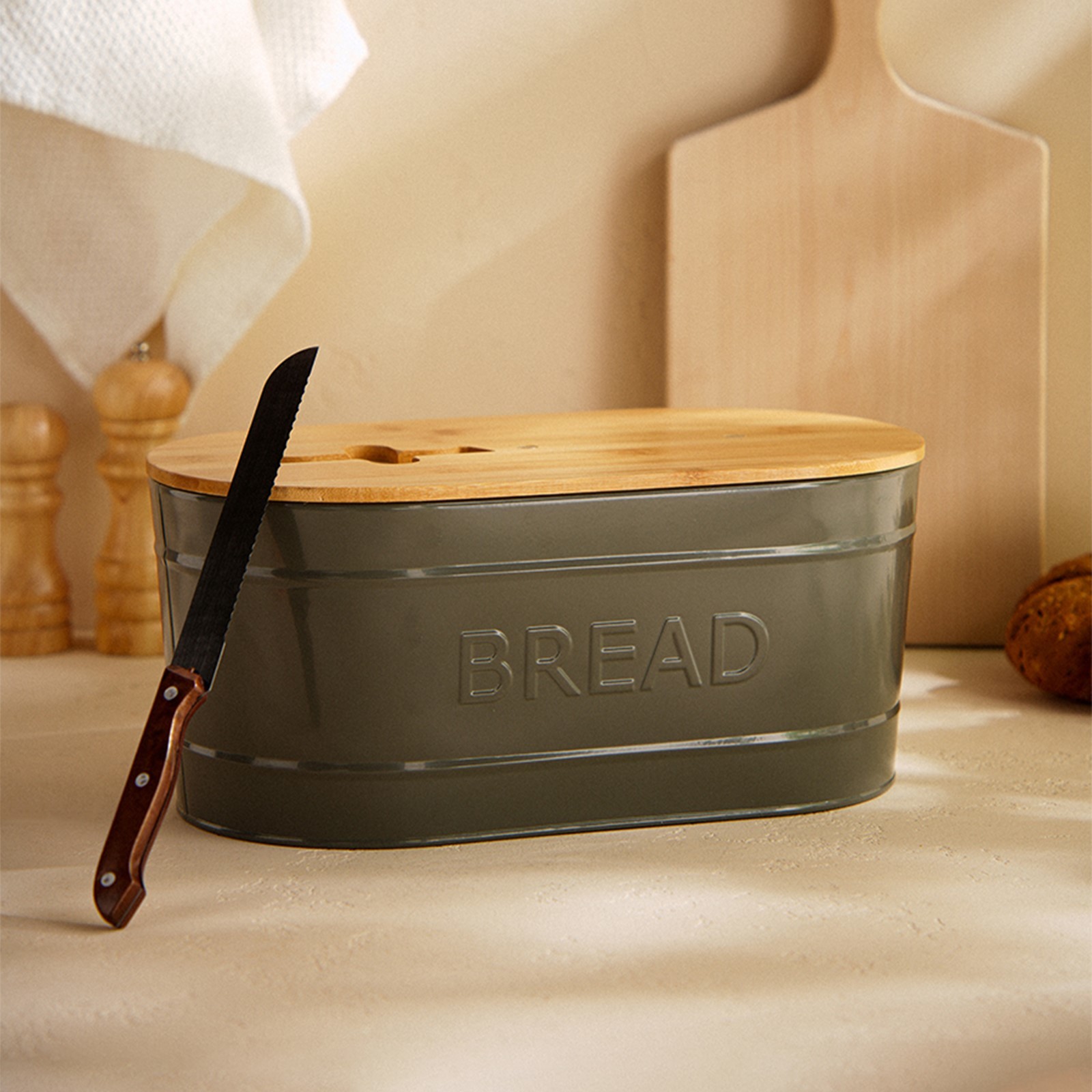 Откройте для себя металлическую хлебницу «Каса Перфекто» с бамбуковой крышкой и ножом! Эта стильная и функциональная кухонная утварь станет незаменимым помощником в вашем доме. Хлебница с бамбуковой крышкой - идеальный выбор для вашей кухни. Этот контейнер для хранения продуктов сочетает в себе стиль и функциональность. Внутри этой удобной хлебницы у вас всегда будет свежий и ароматный хлеб. Бамбуковая крышка придаст вашей кухне особый шарм.