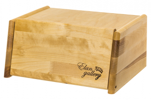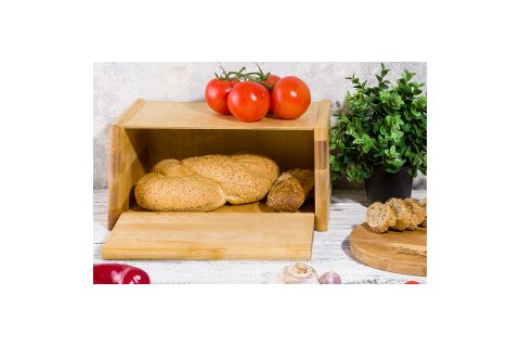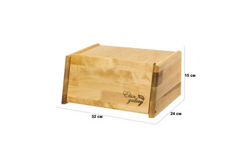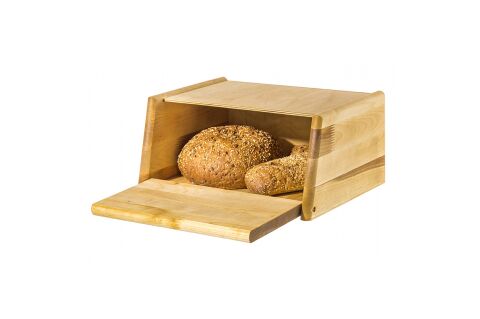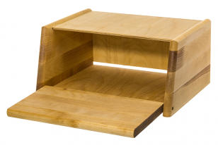Хлебница с дверцей выполнена из березы — экологичного природного материала, прекрасно подходящего для хранения хлебобулочных изделий.