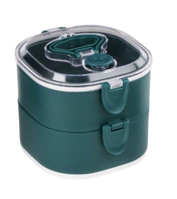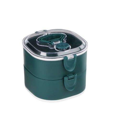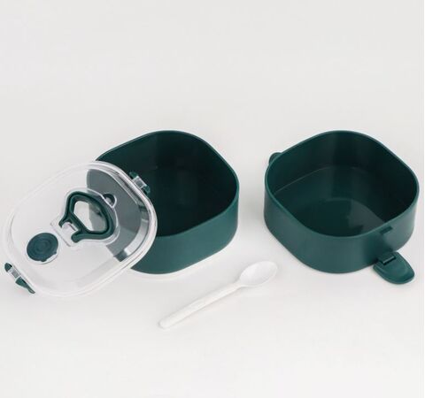 Этот ланч-бокс объемом 1.85 литра отлично подходит для тех, кто любит полноценные порции. Круглая форма и зеленый цвет делают его стильным, а прозрачная крышка позволяет видеть содержимое. С ним вы забудете о неудобных контейнерах и вечном поиске столовых приборов.