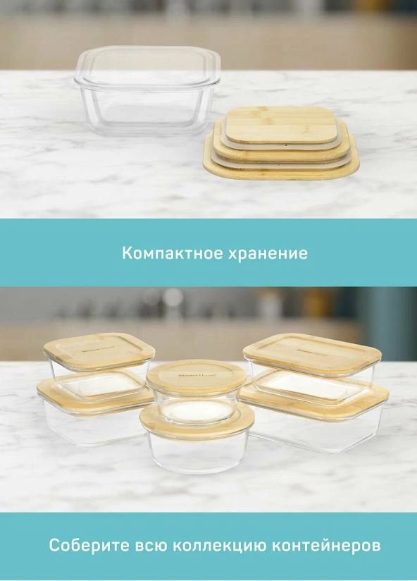 Плотная бамбуковая крышка с силиконовым уплотнителем позволяет сохранять свежесть продуктов.