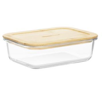 Универсальный прямоугольный контейнер из жаропрочного стекла с бамбуковой крышкой Тор 1050мл.