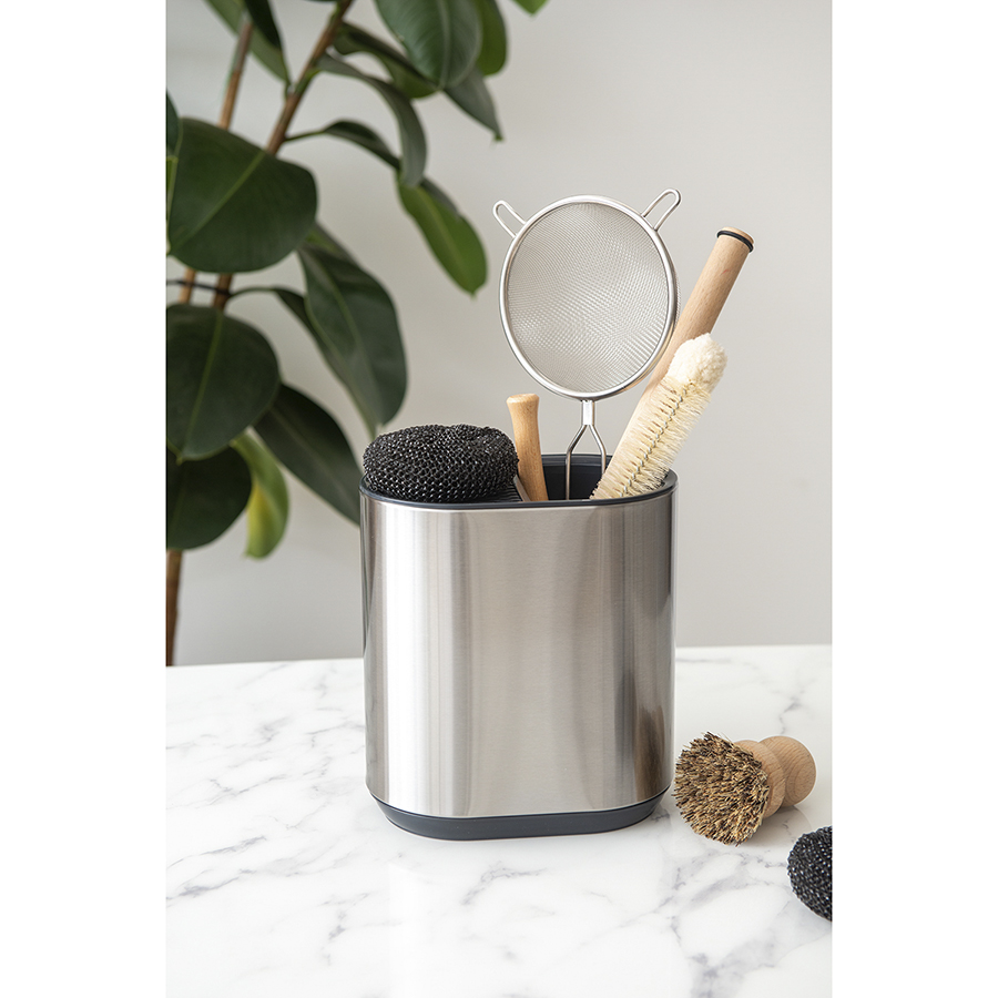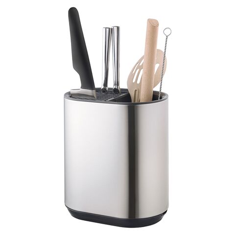 Atle – стильный органайзер для кухонных принадлежностей со специальным отделением для безопасного хранения ножей. Корпус изделия выполнен из практичного и устойчивого к износу АБС-пластика и нержавеющей стали. Покрытие имеет защиту от отпечатков пальцев. Компактные размеры позволяют размещать контейнер в любом удобном месте.