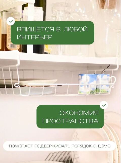 Подвесная металлическая полка – это практичное решение, которое увеличит полезное пространство на кухне, позволяя компактно разместить необходимые предметы в том числе посуду, баночки, приправы, полотенца и прихватки. Белая корзина органично впишется в любое помещение и будет служить надежным хранилищем для широкого спектра предметов: от кружек и крышек до вещей и аксессуаров в гардеробе. Этот органайзер не ржавеет, что гарантирует долговечность и сохранение презентабельного внешнего вида. Установка в шкафчик или стол легка, и в кратчайшие сроки вы сможете максимизировать удобство и порядок на кухне или в любой другой части вашего дома.