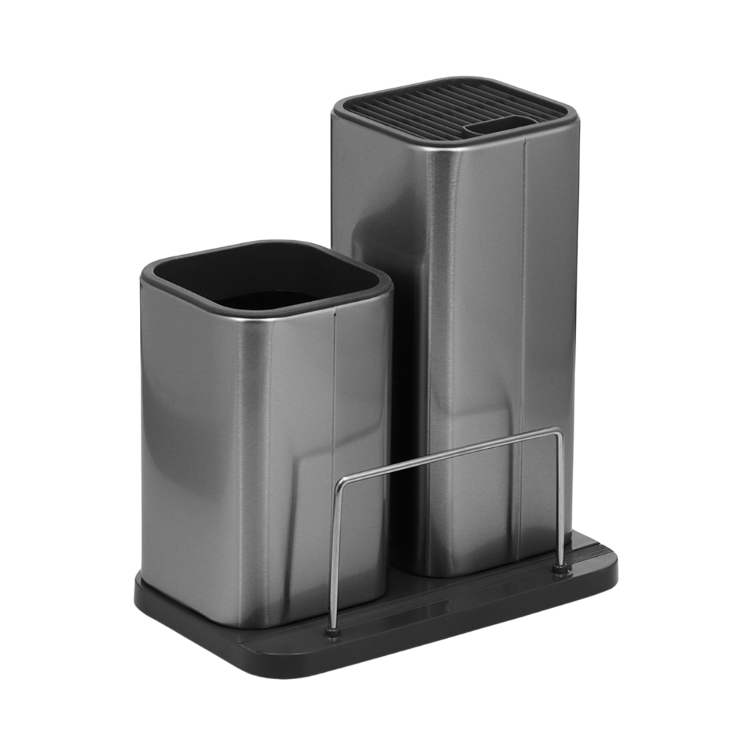 Подставка для ножей и столовых приборов "Металлик" — это универсальный аксессуар, идеально подходящий для стильной организации и демонстрации вашей коллекции ножей. Этот изящный и современный держатель для ножей изготовлен из высококачественной нержавеющей стали.