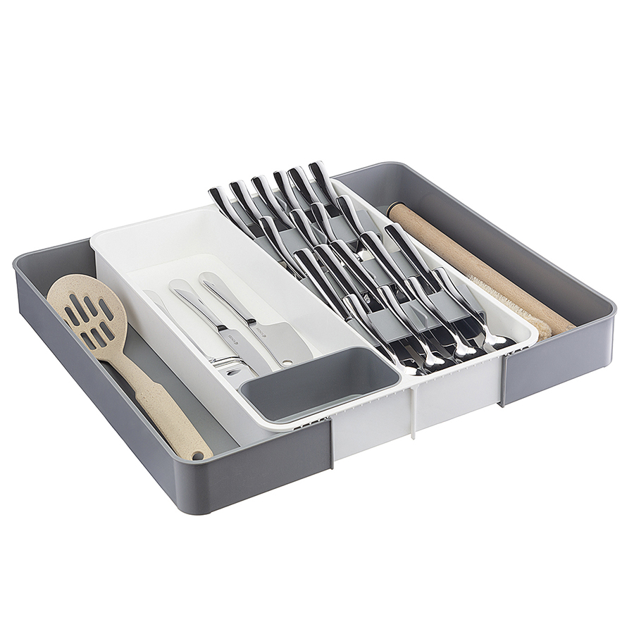 Органайзер Abdi поможет компактно разместить столовые приборы и другие кухонные принадлежности. Изделие выполнено из полистирола – безопасного в использовании материала, устойчивого к влаге, перепадам температуры и простого в уходе. Конструкция отличается лаконичным дизайном, что позволяет вписать ее в любой современный интерьер.