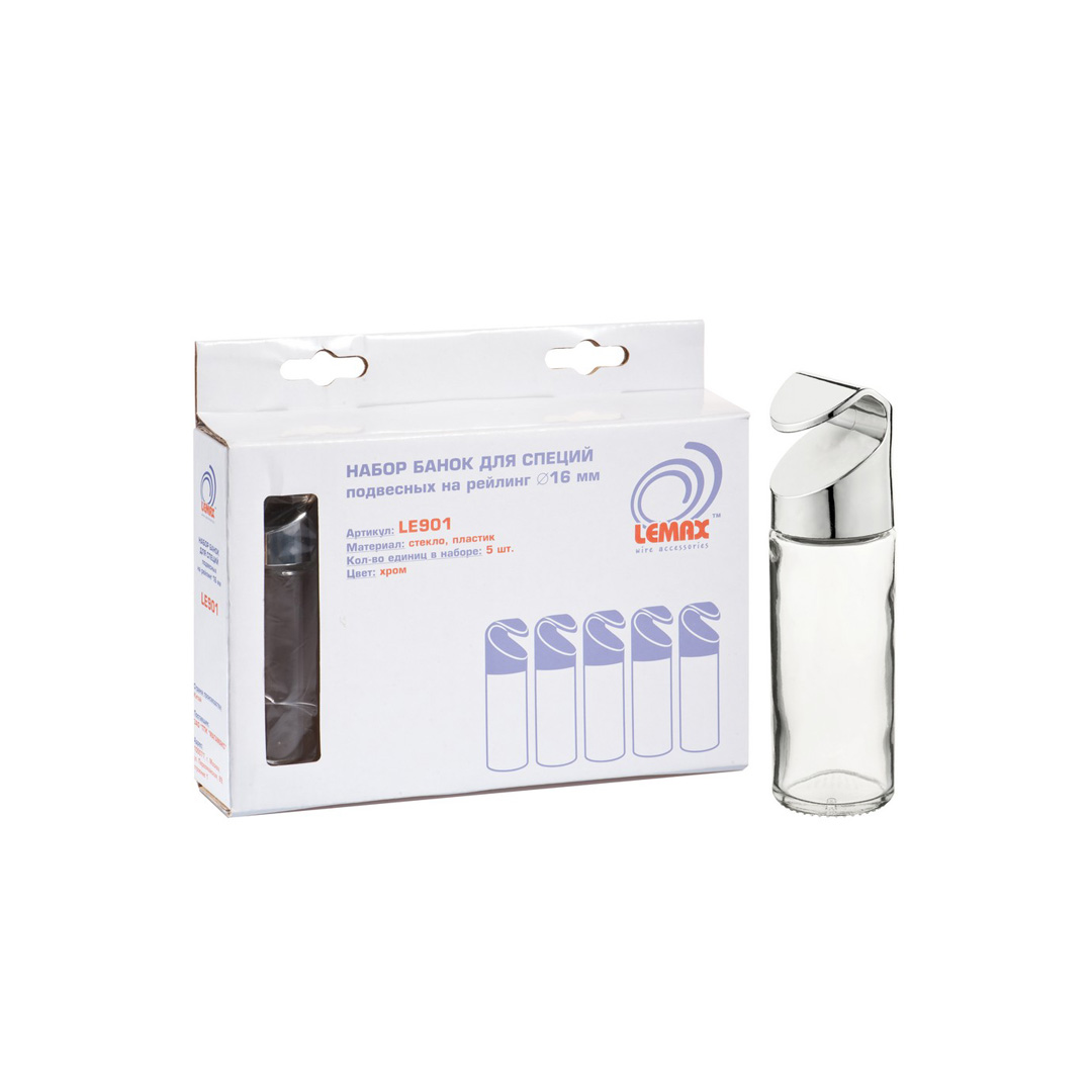 ЛЕМАКС, набор навесных баночек на рейлинг, 5 штук, хром