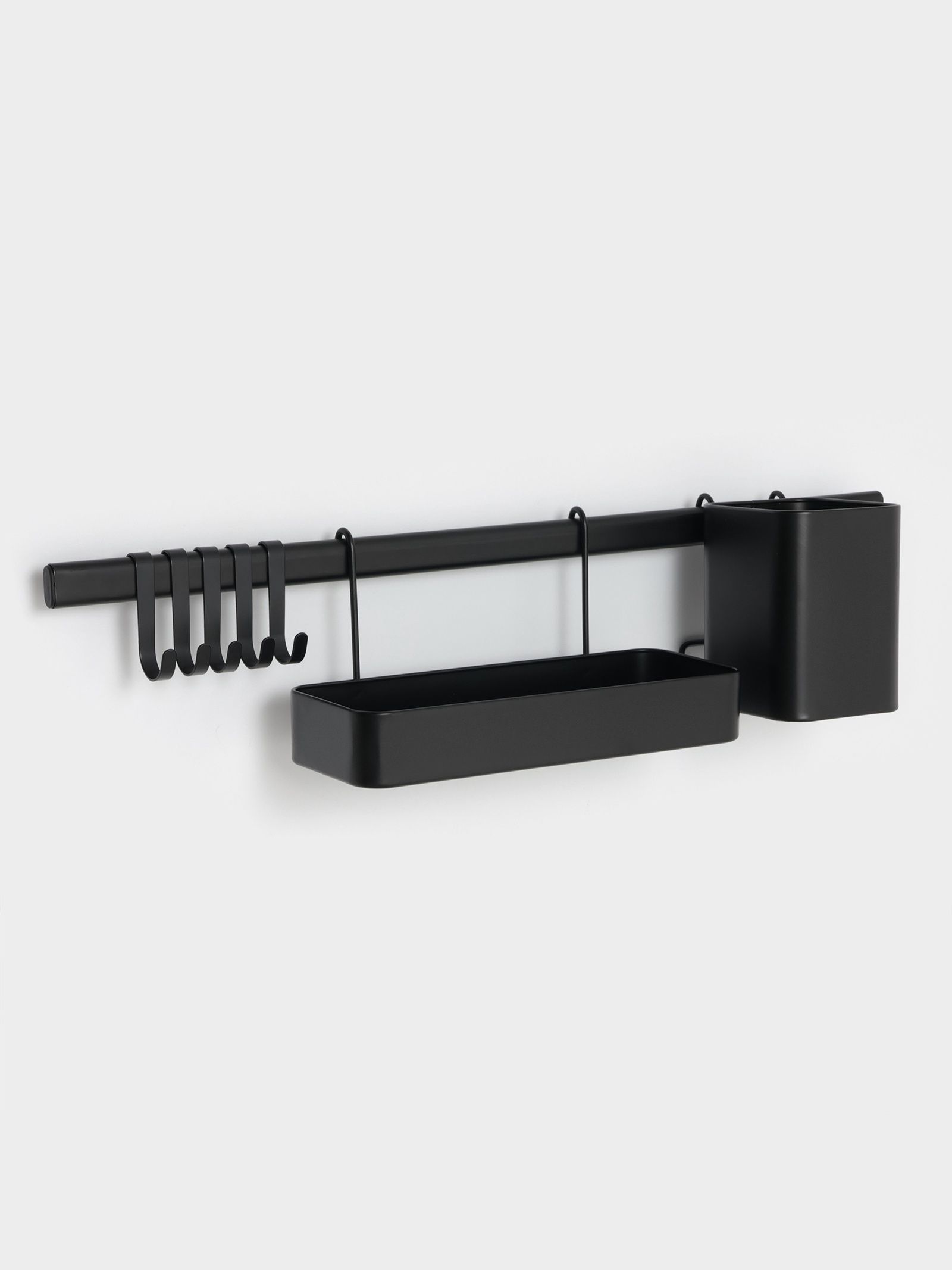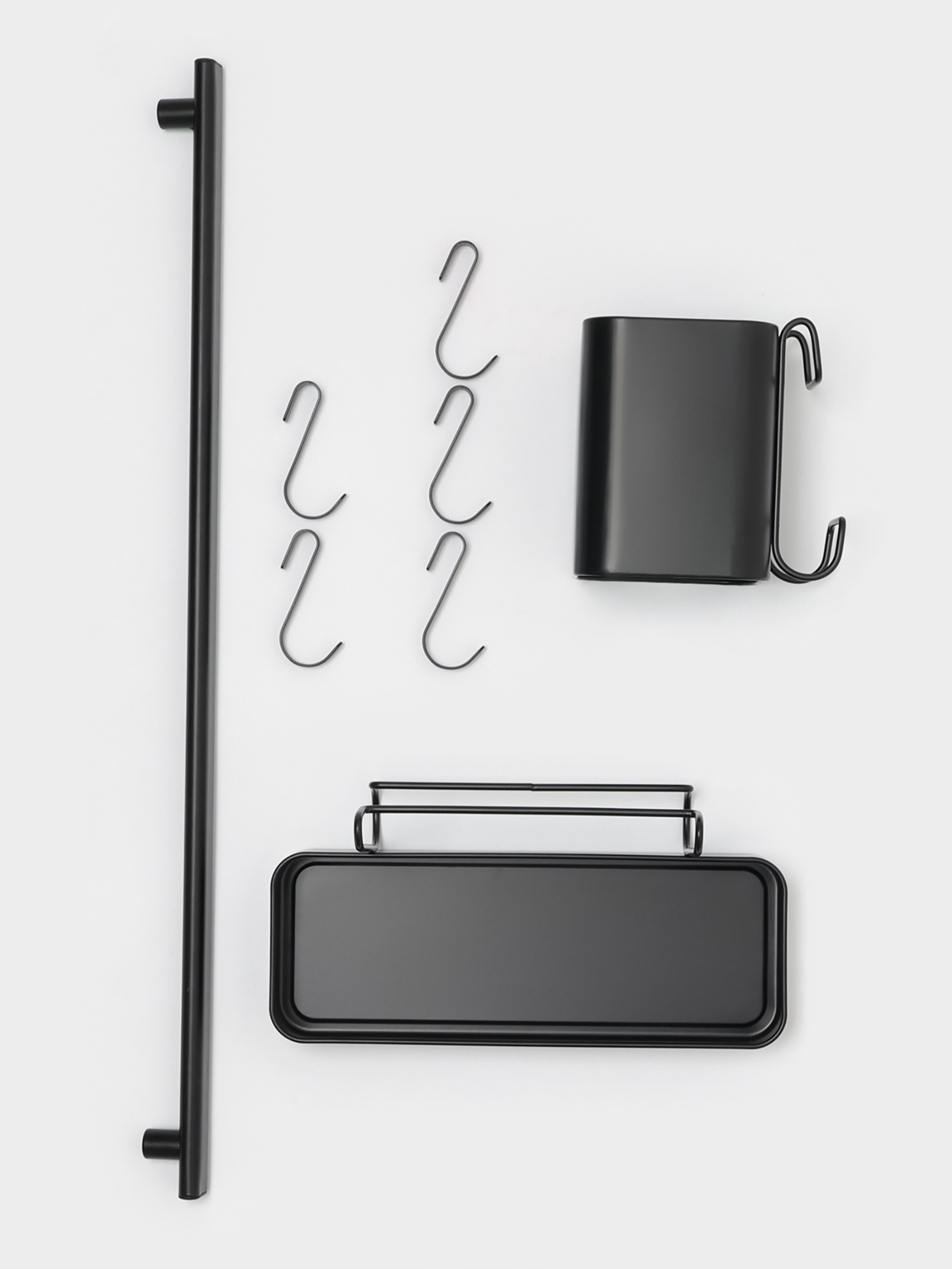 Универсальный рейлинг помогает решить проблему с ограниченным количеством мест хранения, эффективно использовать пространство в доме.