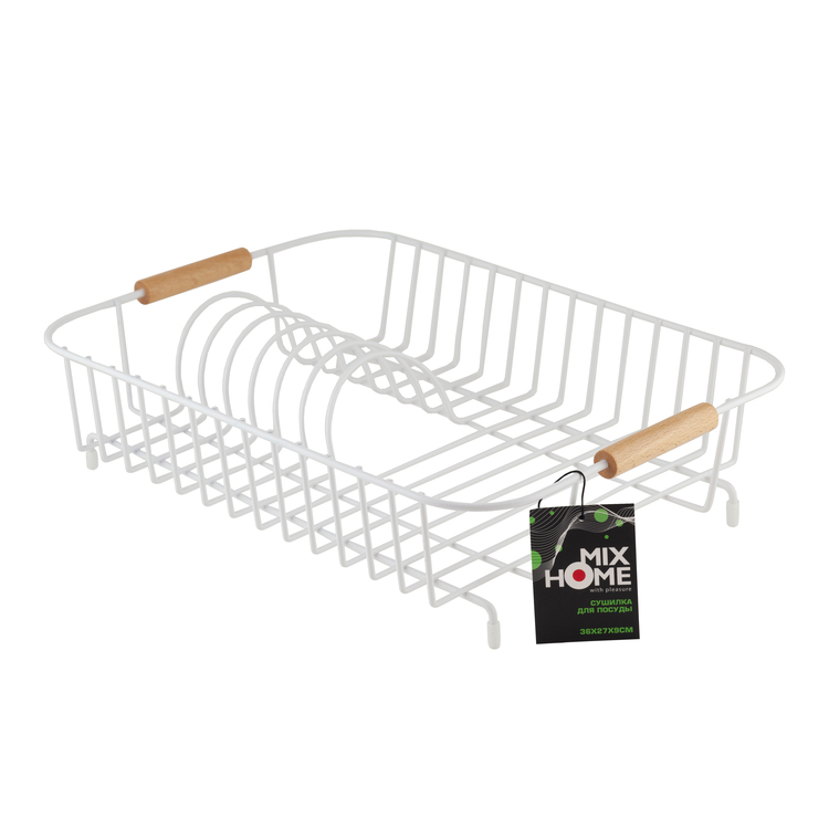 Сушилка для посуды сочетает в себе функциональность и современный дизайн. Металлическая конструкция с белым покрытием и деревянными ручками придает ей стильный вид в стиле лофт, идеально вписываясь в любую кухню. Компактная и настольная, сушилка предназначена для тарелок, столовых приборов и чашек, эффективно используя пространство и помогая экономить место. Оснащенная разделителями, она обеспечивает удобное и организованное сушку посуды. Легкая и удобная в переноске, эта сушилка гарантирует не только гигиеничность, но и простоту в уходе. С современным дизайном и практичными функциями, она станет отличным дополнением к вашему дому и подарит удобство в использовании.