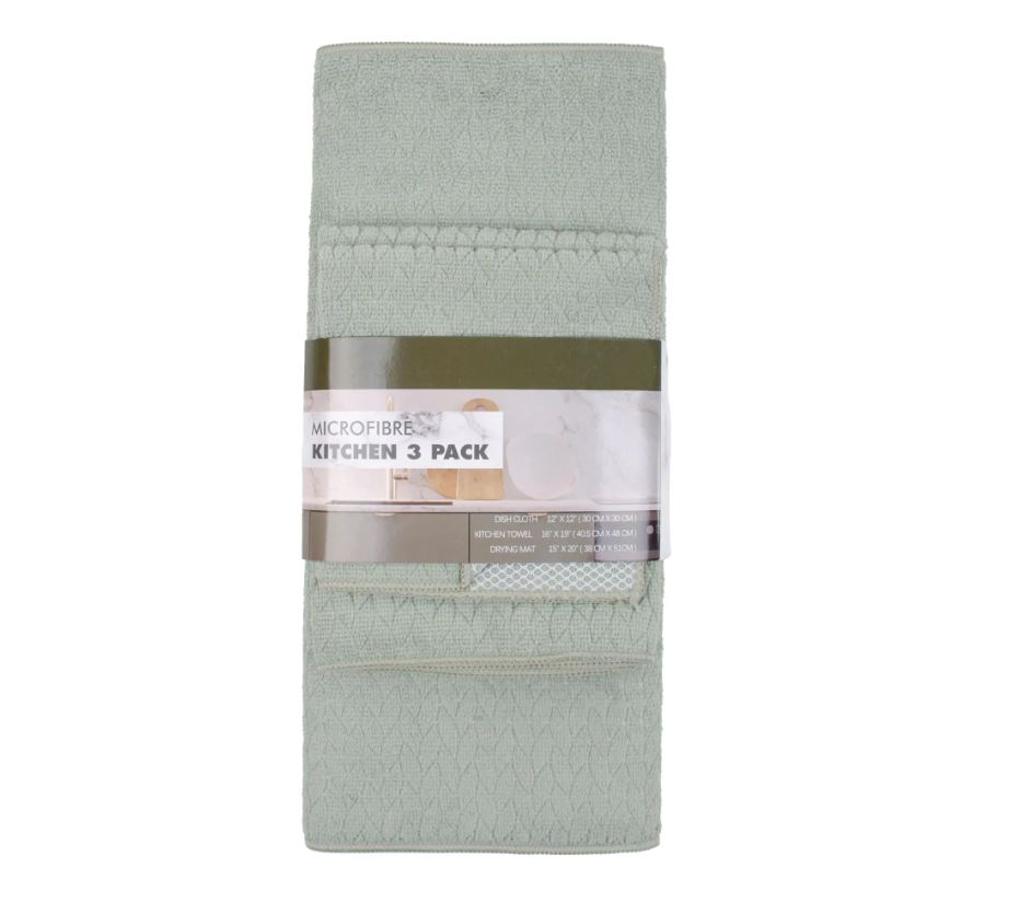 МИКС ХОУМ, набор: коврик для сушки посуды, салфетки из микрофибры 2 шт, зеленый