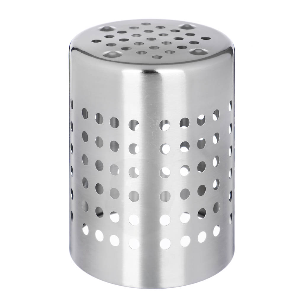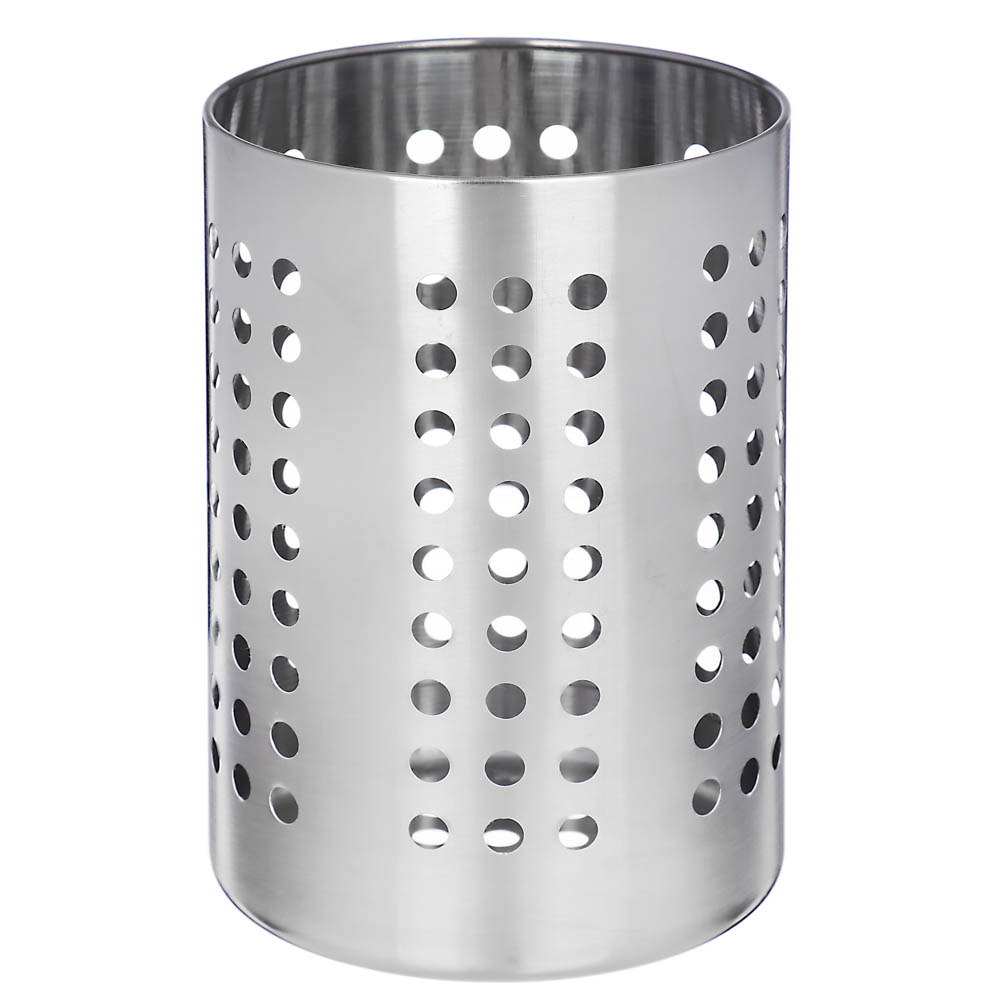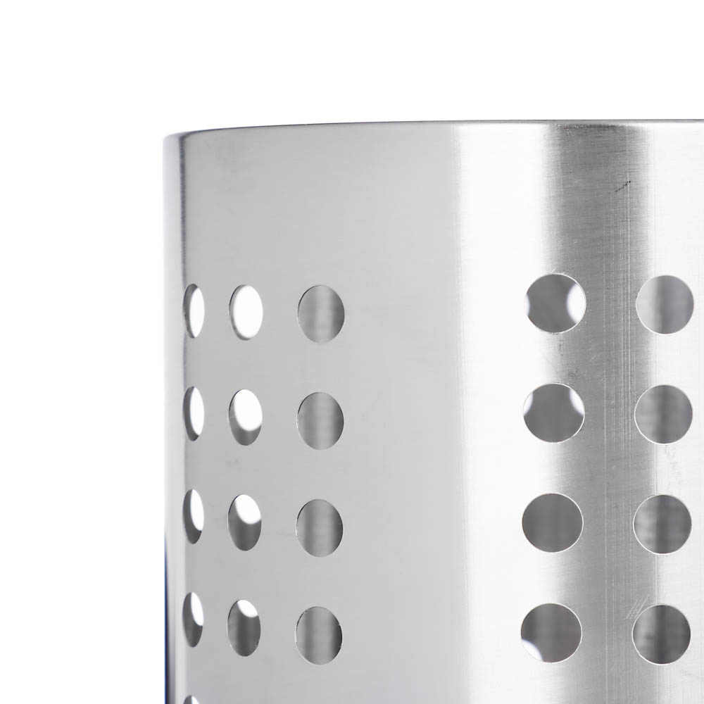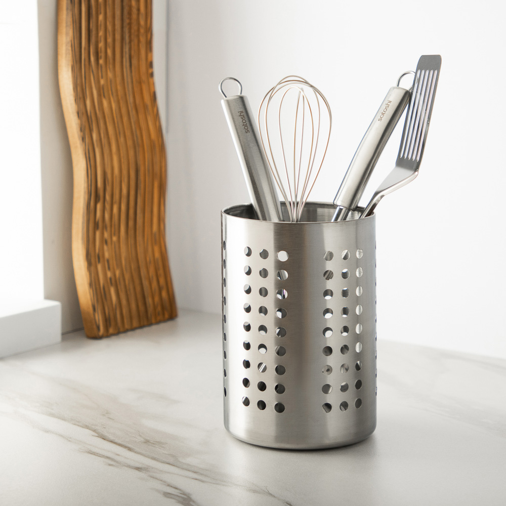 Подставка для столовых приборов 13х18 см Satoshi - это компактная подставка, которая позволяет хранить ложки, вилки, ножи, лопатки и другие кухонные принадлежности в одном месте. Отличается большой вместительностью при скромном размере. Изготовлена из качественной нержавеющей стали. Имеет небольшие отверстия для отвода лишней влаги. Универсальный дизайн и форма позволяют использовать подставку как для хранения кухонной утвари, так и для канцелярских принадлежностей, а также предметов хобби и творчества.