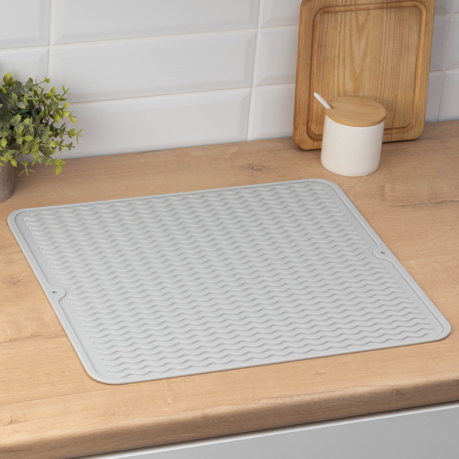 Высокие бортики не позволят жидкости проникнуть на стол, в шкаф или на раковину - никаких луж и испорченной мебели, от аналогов наш коврик отличается практичностью! Благодаря рельефной поверхности силиконового коврика влага не будет выходить за пределы коврика под посуду. Коврик для сушки изготовлен из материала обладающим высокой стойкостью к перепаду температур и бытовой химии. Жаропрочный материал выдерживает высокие температуры и сможет защитить дерево от воздействия жара!