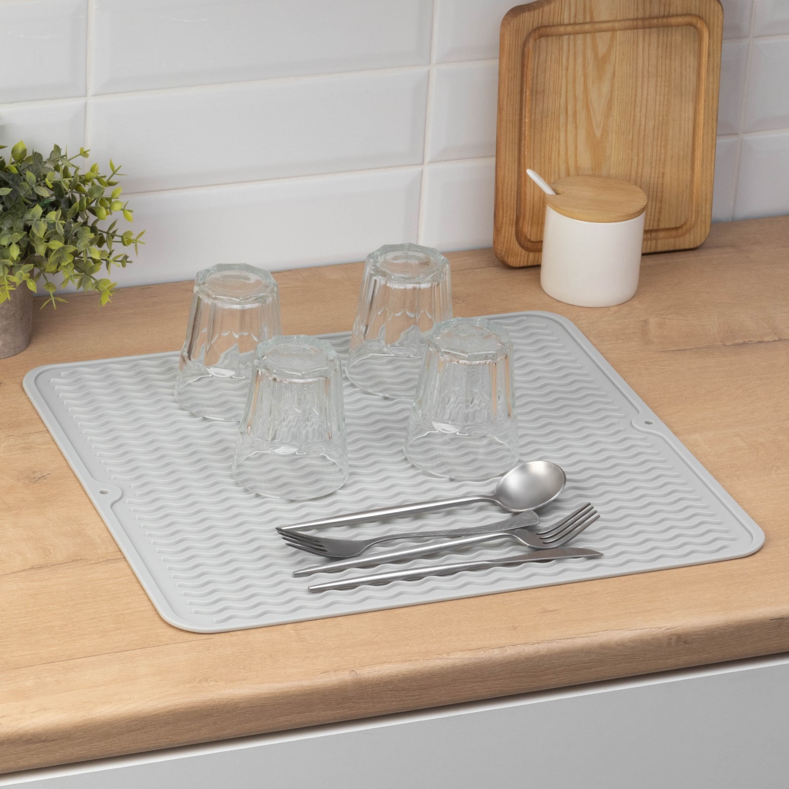 Силиконовый коврик для сушки посуды и столовых приборов - идеальный вариант для вашей кухни! Благодаря водонепроницаемому материалу вода будет скапливаться исключительно на поверхности сушилки.