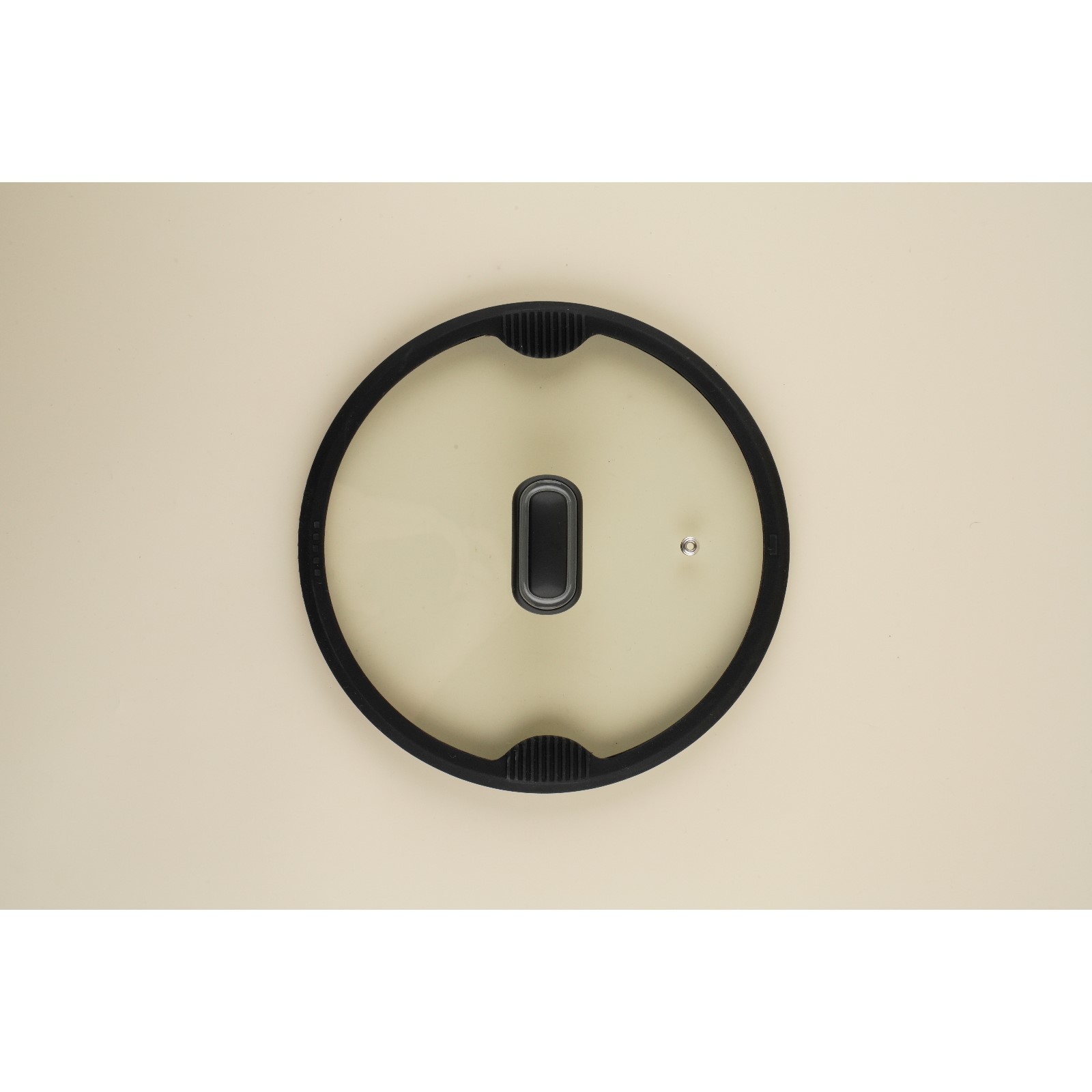 - Термостойкая стеклянная крышка плотно прилегает к кастрюле;