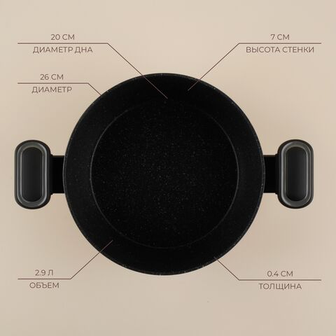 ОЛИВКОВАЯ РОЩА, жаровня/сотейник, 2,9л, 26 см, черный