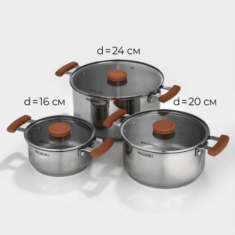 Диаметр 16/20/24 см, высота 12,5, 9,5, 7 см