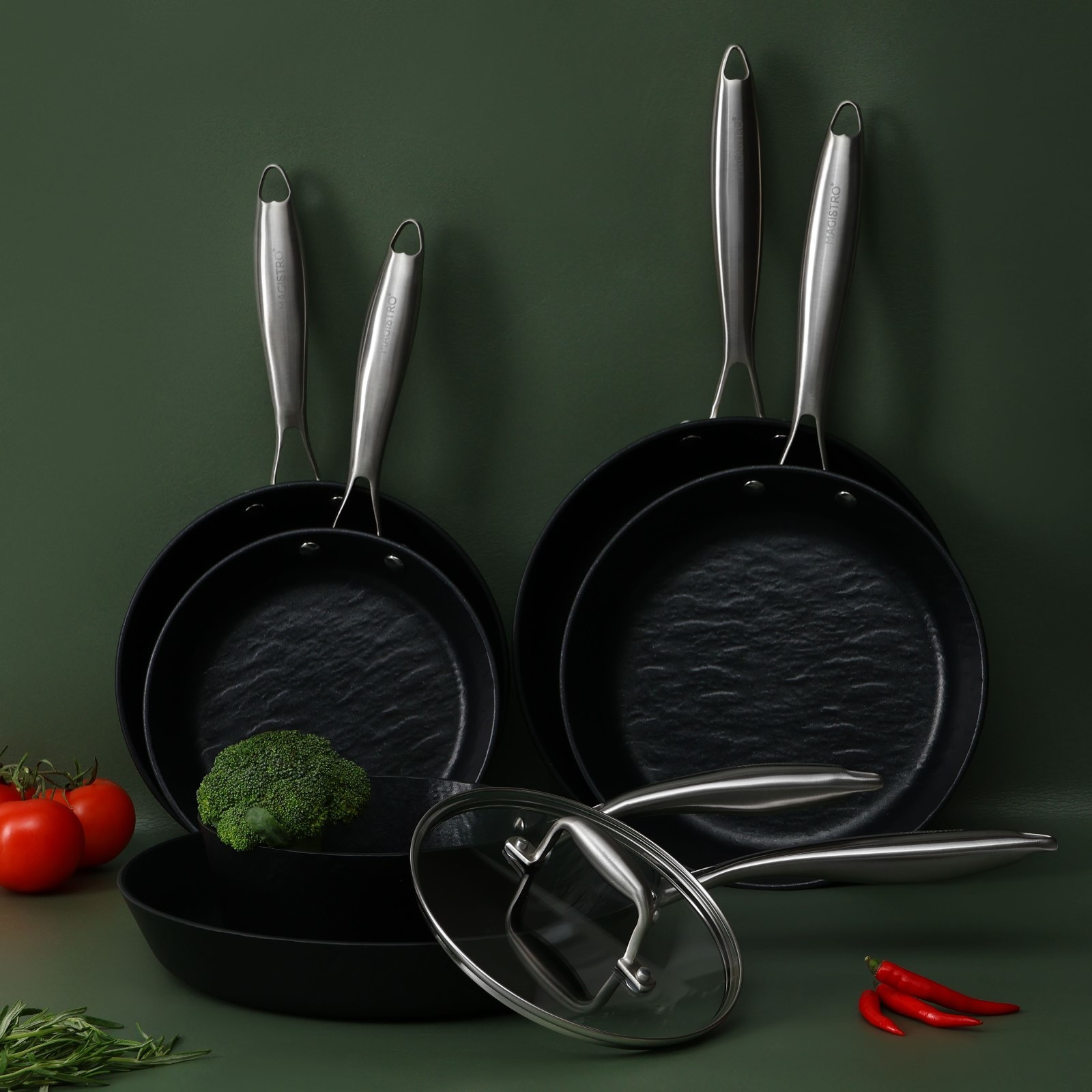 - В набор входит две сковороды разного размера, что позволяет готовить разнообразные блюда;