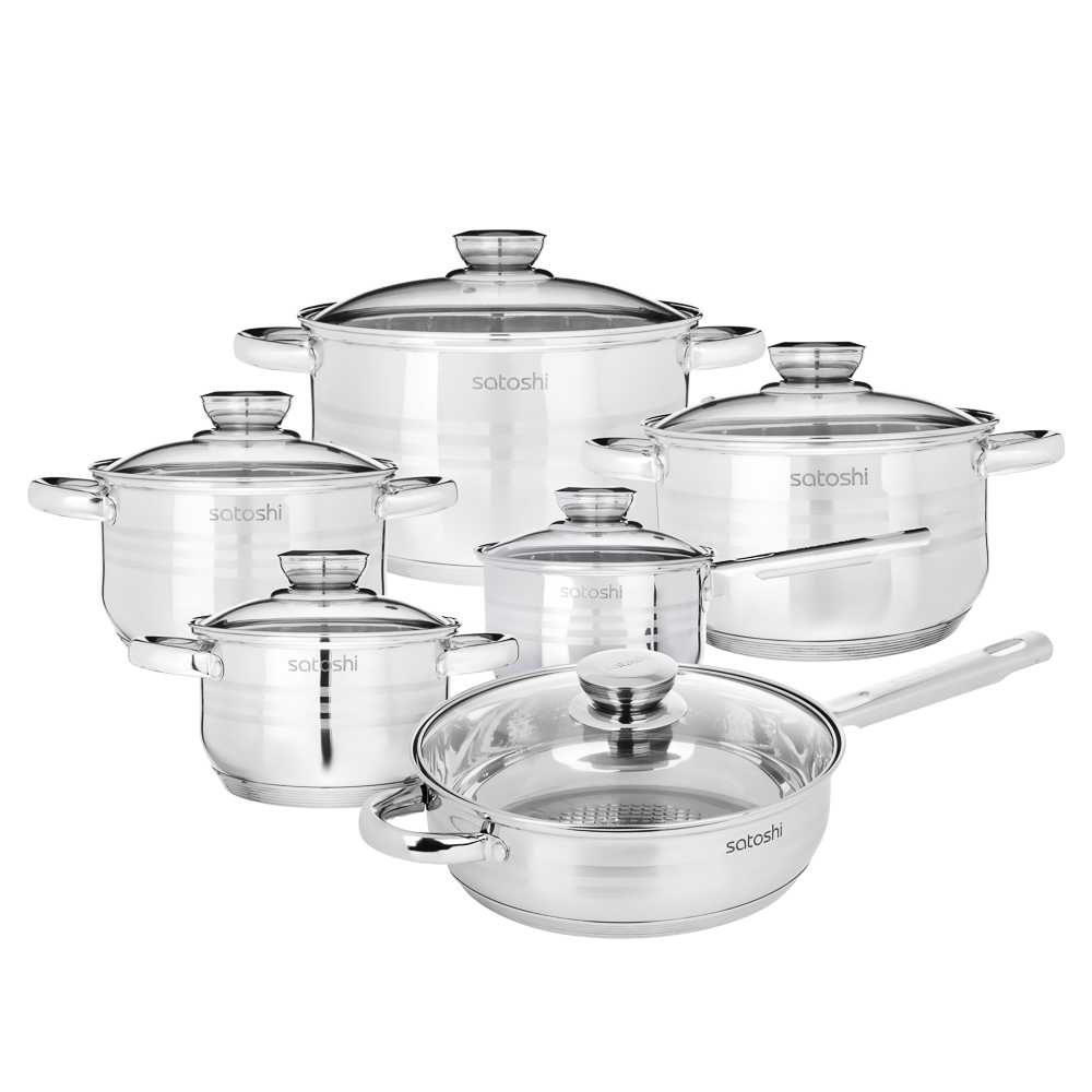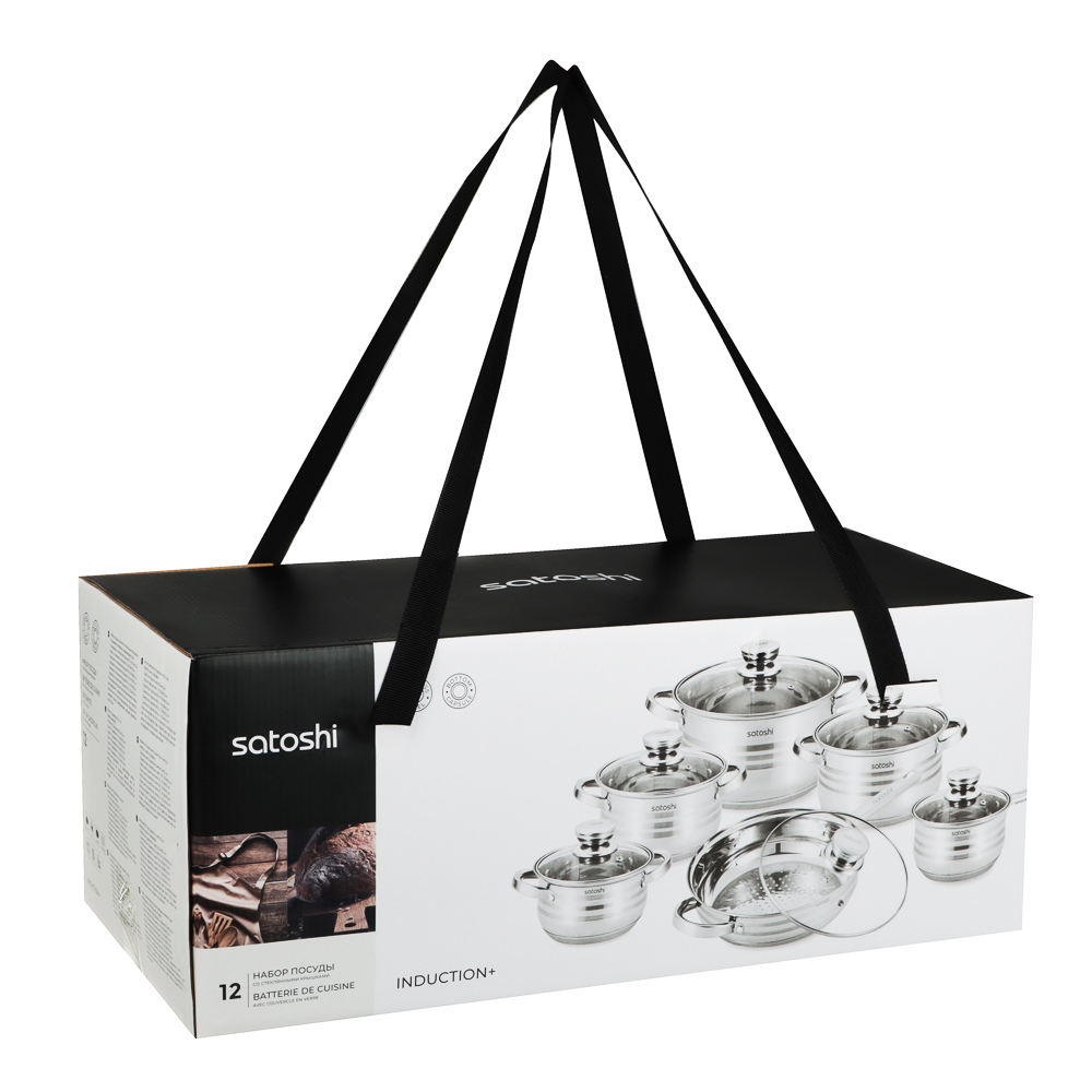Набор кастрюль SATOSHI Рокруа – это посуда для приготовления еды из нержавеющей стали с капсульным дном и со стеклянными крышками в современном исполнении. Пятислойное капсульное дно поможет равномерному термораспределению. Крышки изготовлены из жаропрочного стекла.