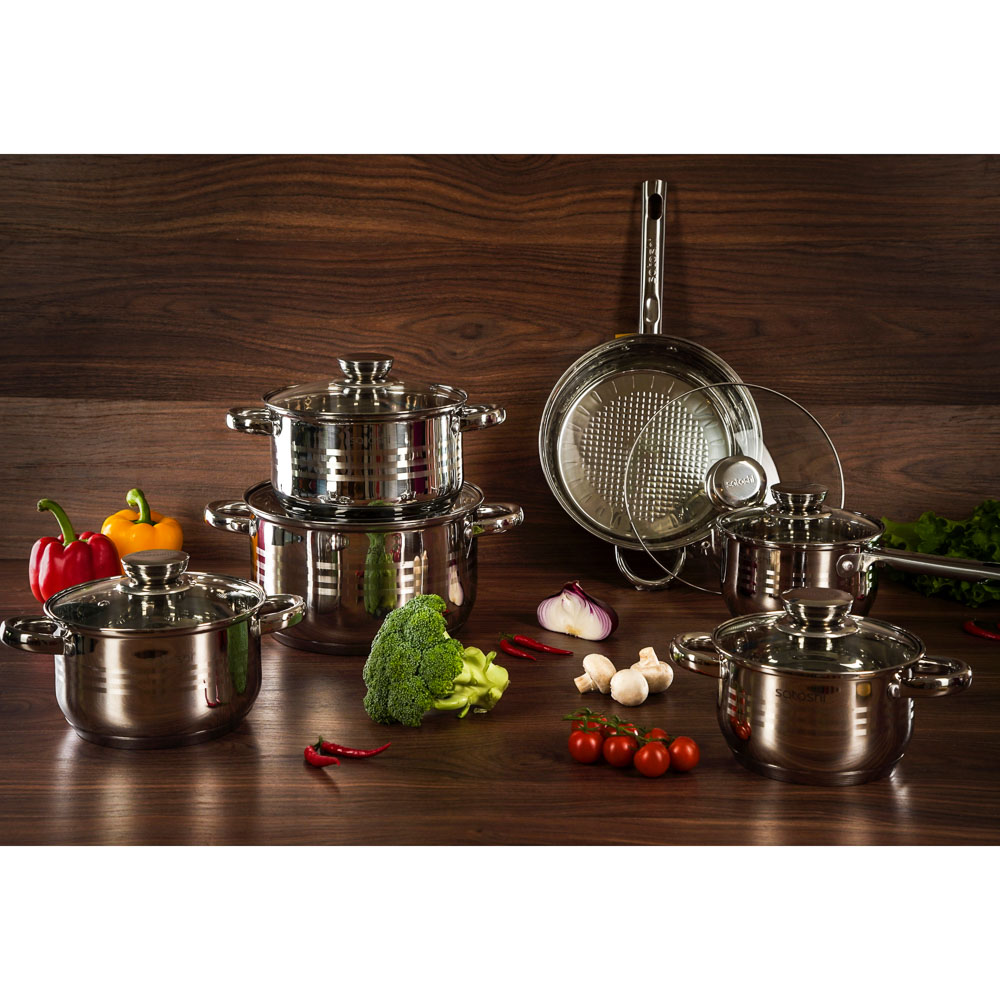 РОКРУА, набор кухонной посуды, 12 предметов, нержавеющая сталь, серый