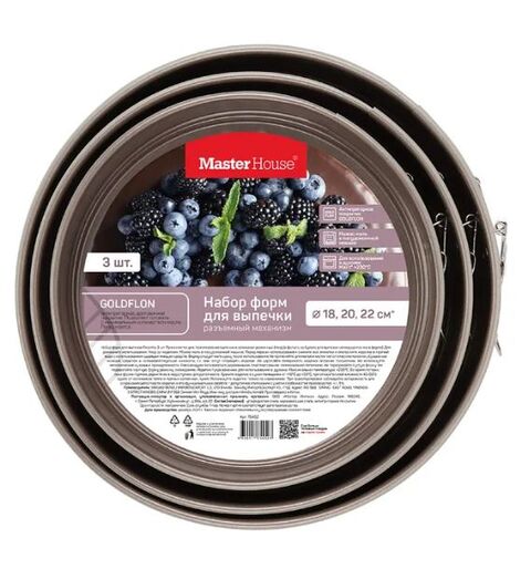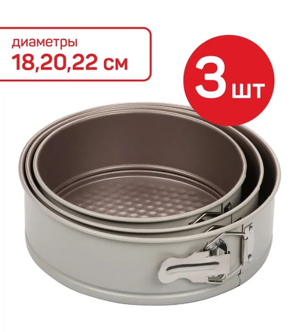 РОЗЕТТА, набор форм для выпечки, 3 предмета: 18/20/22х6,6 см, светло-серый
