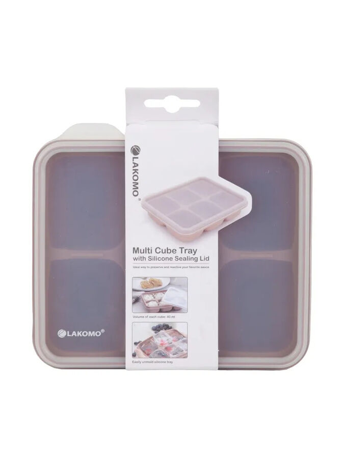 ЛАКОМО, форма для льда с крышкой, куб, 6 ячеек, пыльно-розовый