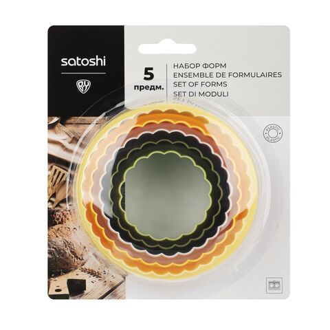 Набор форм для печенья/ салатов/ десертов SATOSHI из 5 предметов, размеры 4,8-5,8-6,8-7,8-8,8х3,5 см – это удобные приспособления для приготовления аккуратных кулинарных изделий, а также для оригинальной подачи салатов. Пластиковые формы изготовлены из качественного прочного пищевого пластика. Помогут придать идеально ровную круглую форму печенью, могут использоваться для приготовления желе с фруктами, а также для порционирования и оформления блюд. Пластик легко моется и подходит для многоразового использования.