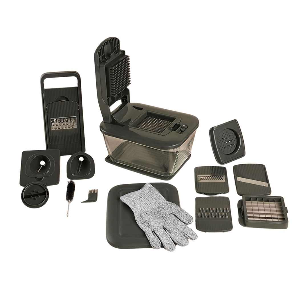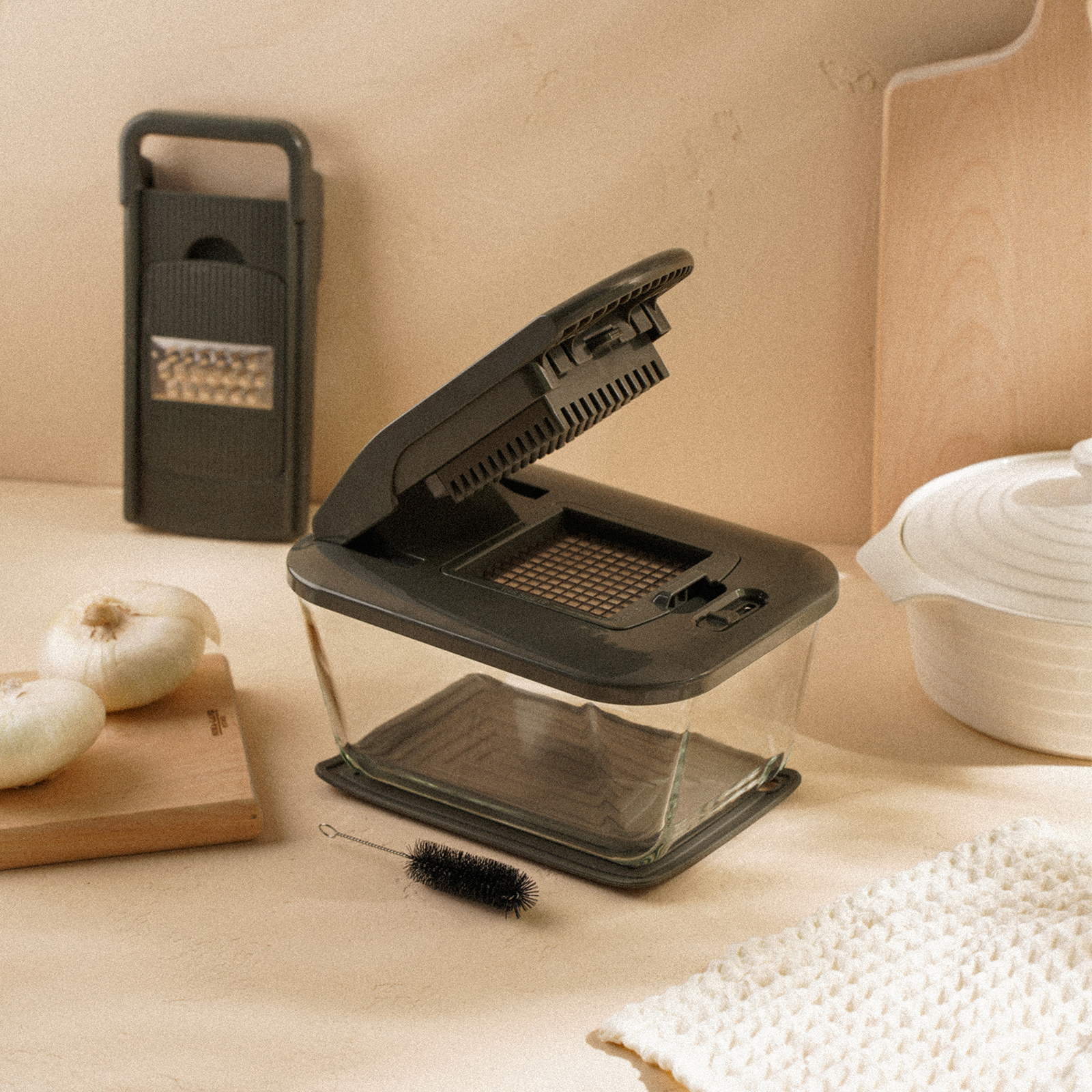 Главное преимущество овощерезки — её универсальность. В комплект входит контейнер для нарезки, который также можно использовать в качестве дуршлага, что упрощает процесс приготовления пищи. Нескользящая ручка обеспечивает комфортное использование, а возможность мытья в посудомоечной машине экономит ваше время и силы.