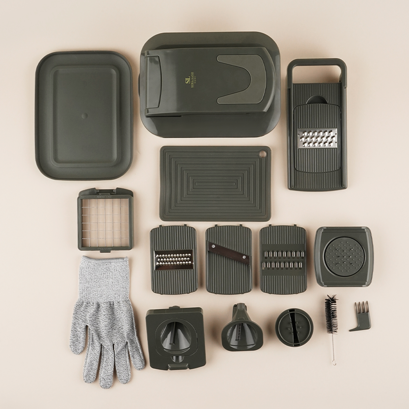 Представляем вашему вниманию многофункциональную овощерезку «Оливковая роща», которая станет незаменимым помощником на вашей кухне. Этот уникальный инструмент позволяет вам легко и быстро справляться с нарезкой, шинковкой и измельчением овощей благодаря 9 сменным насадкам. Вся работа выполняется с использованием высококачественных материалов, таких как нержавеющая сталь и ABS-пластик, что гарантирует долговечность и надежность устройства.
