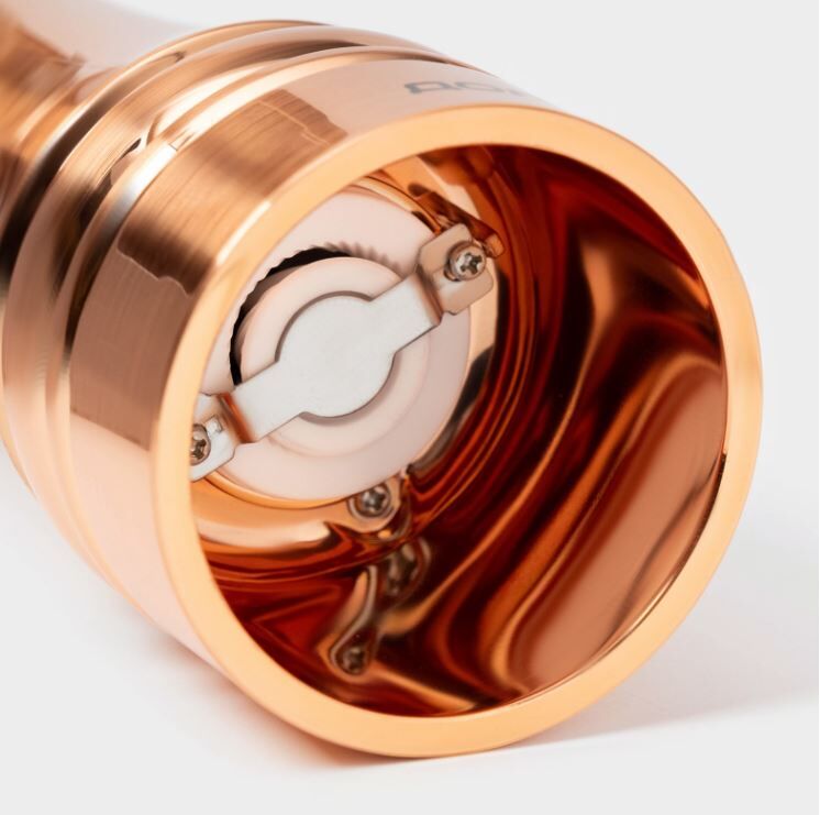 Её утонченный медный цвет и фигуристый дизайн превращают её в настоящее украшение стола. Мельница имеет прочный корпус и керамический механизм, который обеспечивает равномерный помол и сохраняет аромат специй. С помощью этой мельницы вы с легкостью сможете приготовить вкуснейшие блюда с свежемолотыми специями.