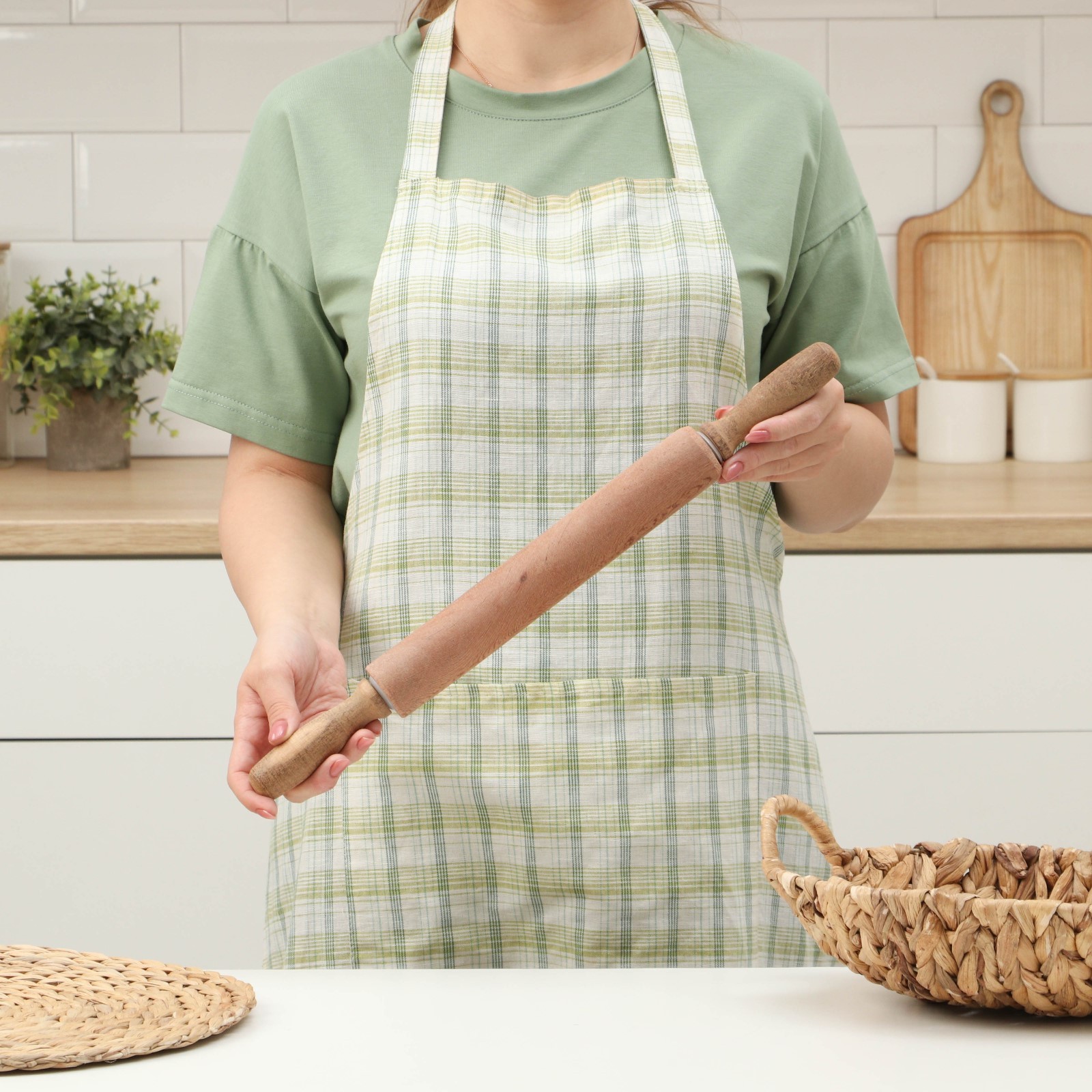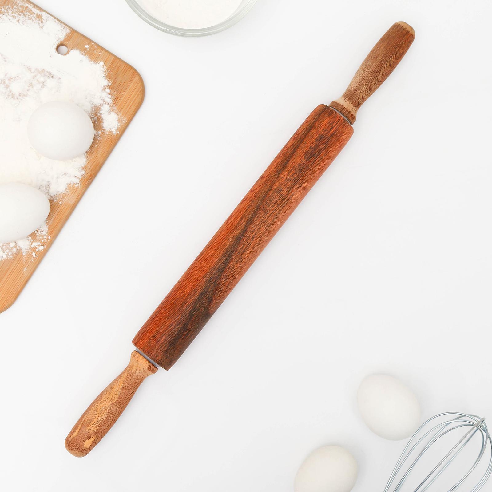 Скалка вращающаяся, 41×4 см, фигурные ручки, акация