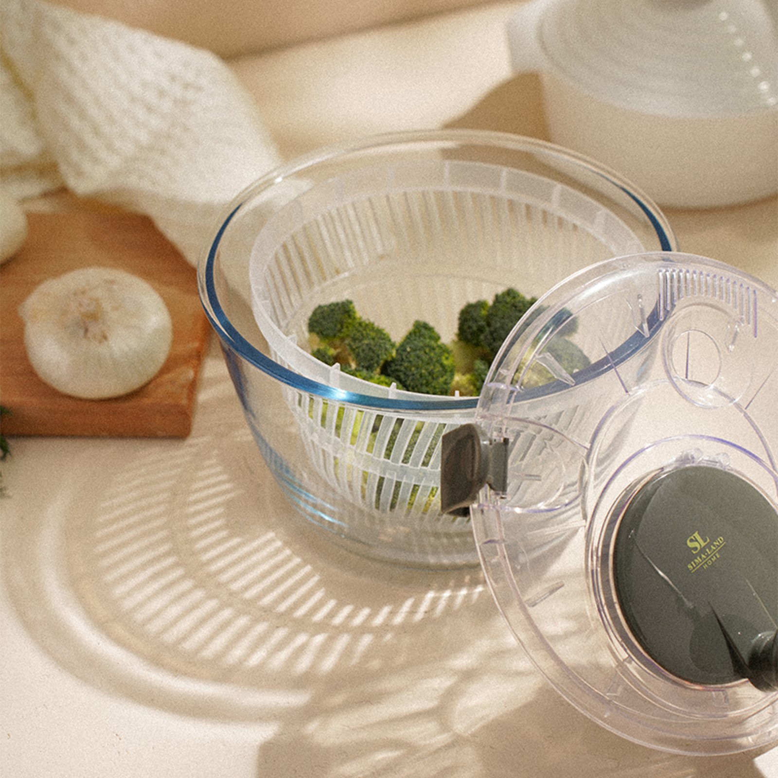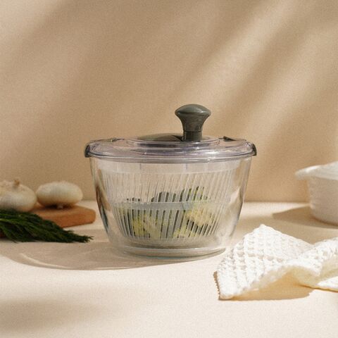 Основное преимущество этой центрифуги — использование жаропрочного стекла для чаши. Это не только придает ей долговечность, но и позволяет использовать её в качестве салатника. Прозрачная чаша облегчает контроль за процессом сушки, а стильный оливковый оттенок добавляет изысканности вашей кухне.