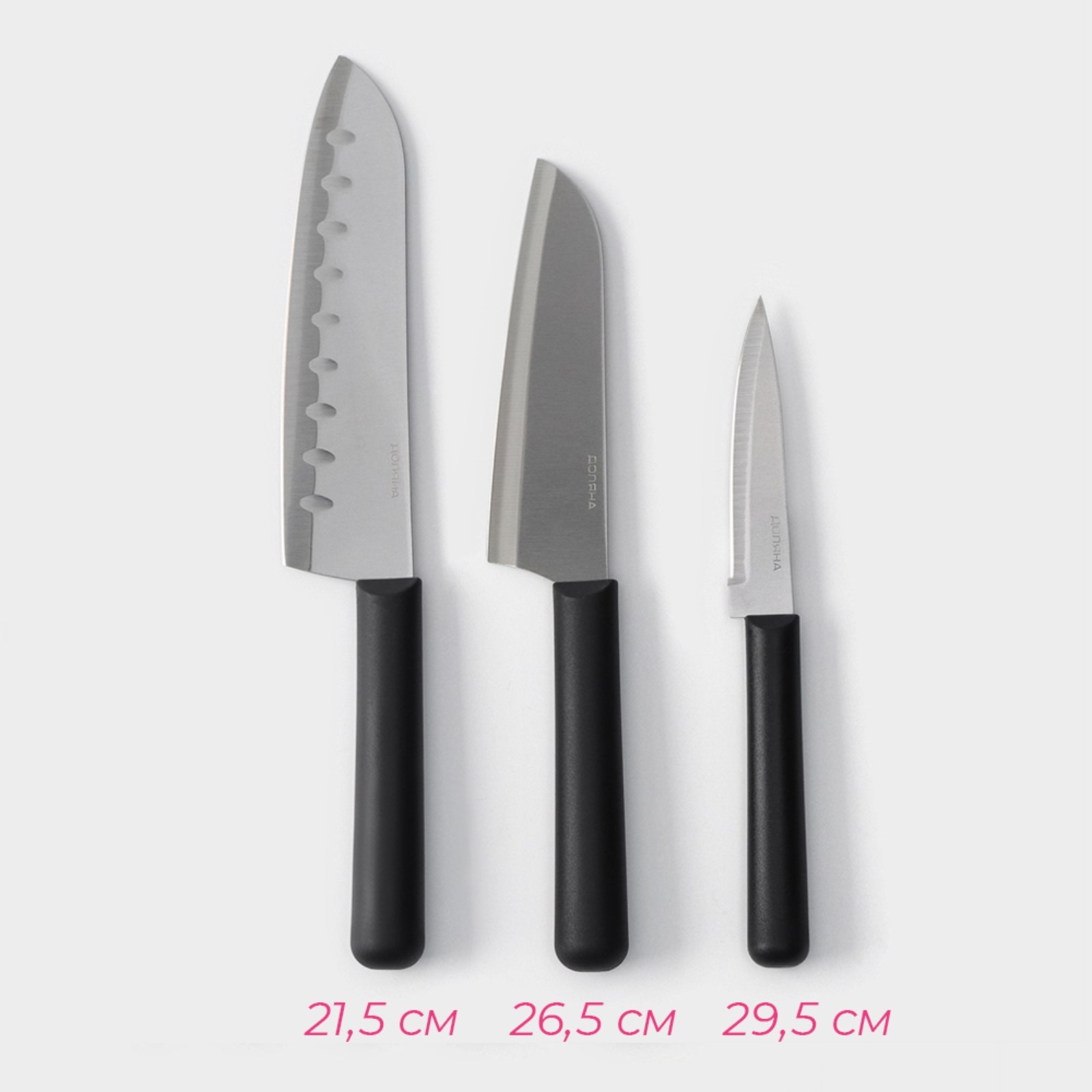 Эргономичные ручки: благодаря продуманному дизайну, ручки ножей удобно лежат в руке, обеспечивая надежный захват и предотвращая скольжение.