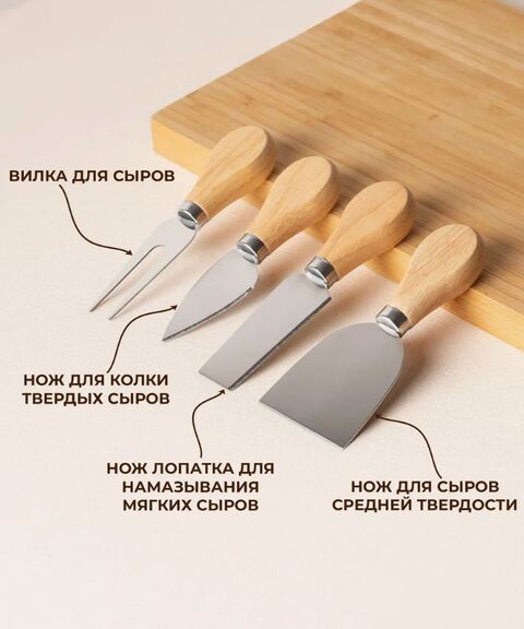 Набор ножей для сыра из 4 предметов предназначен для нарезки сыра и других закусок.