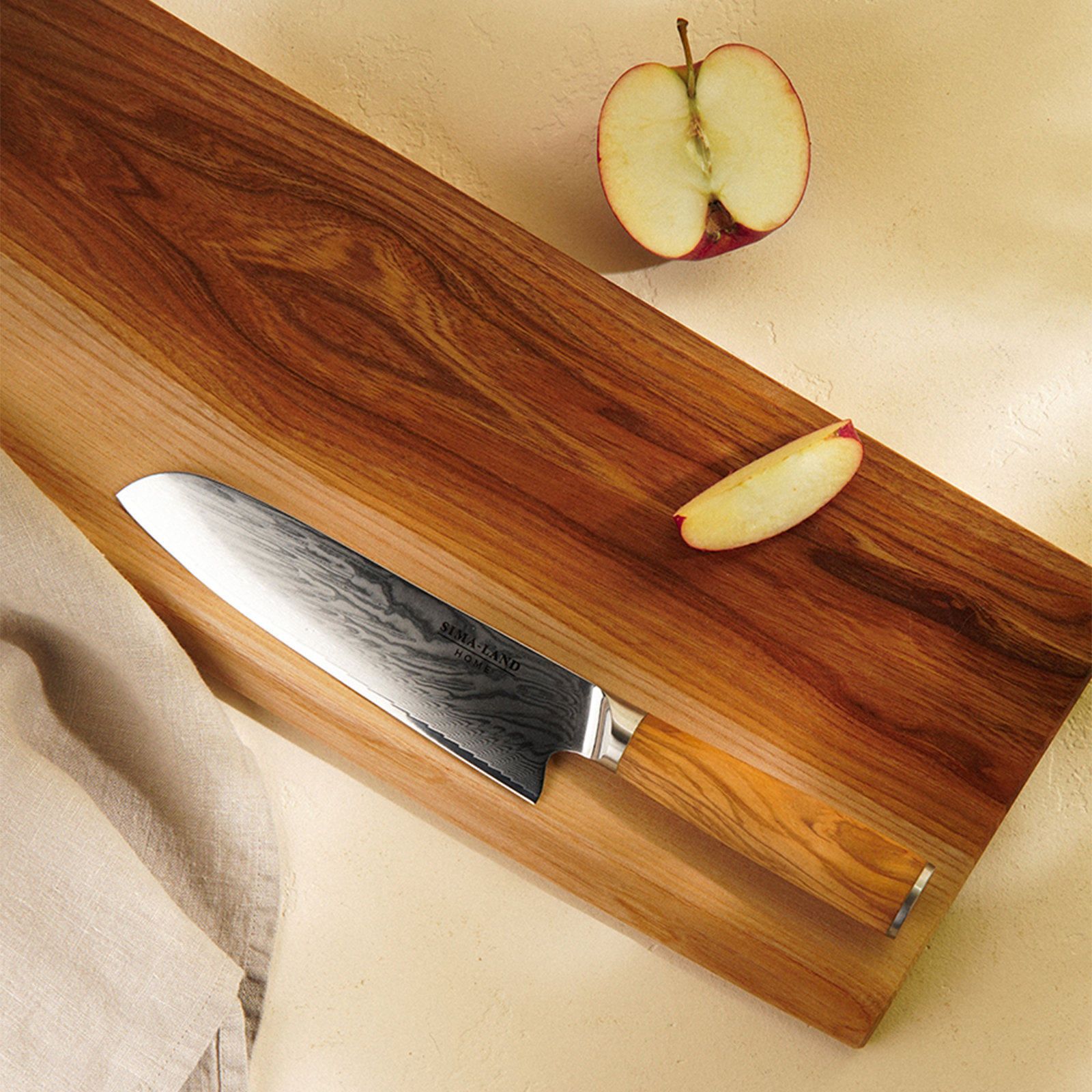 - Идеальная резка: широкое лезвие сантоку позволяет легко и быстро нарезать, рубить и шинковать продукты, от овощей до мяса;