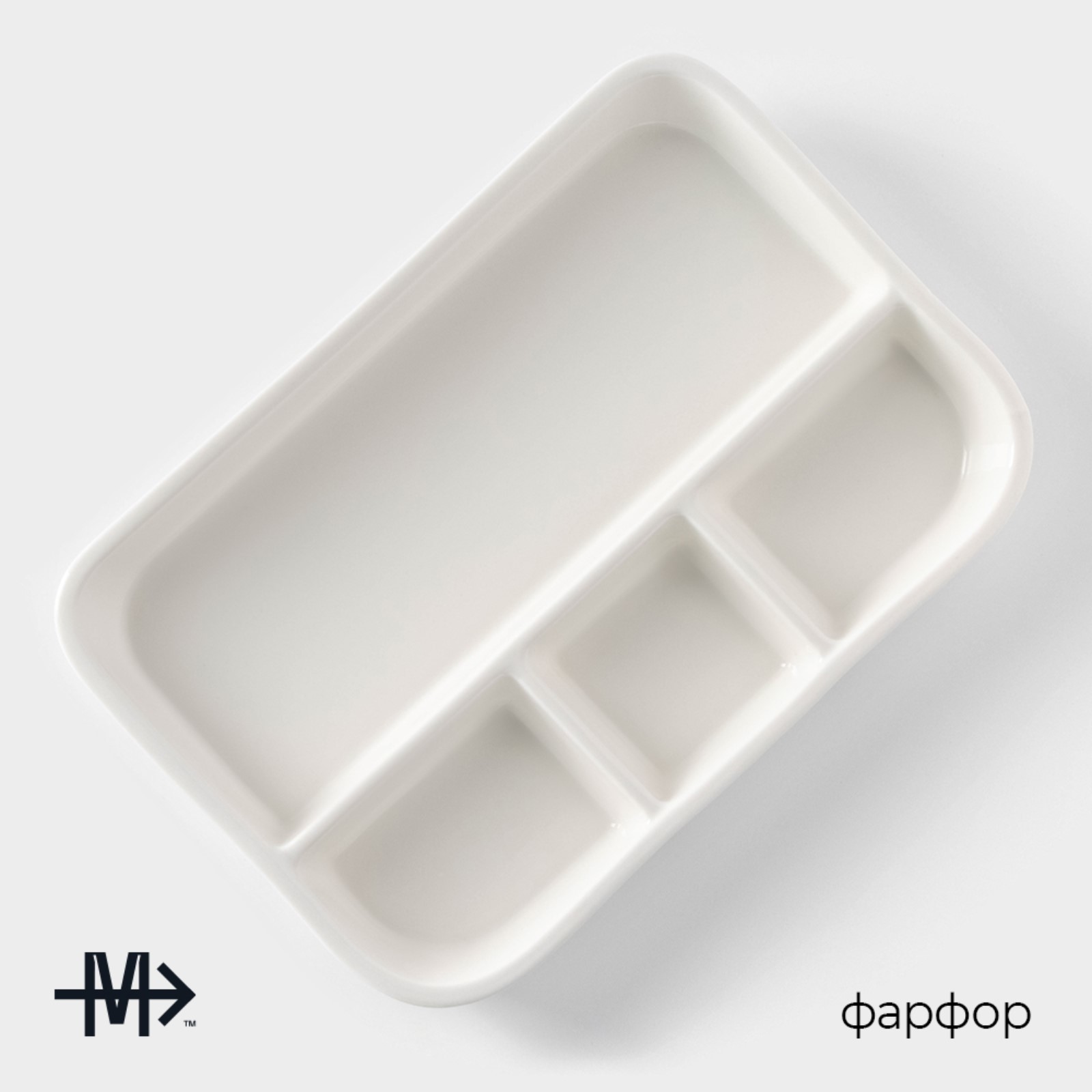 Менажница фарфоровая Magistro «Бланш» — это стильный и функциональный предмет посуды, который станет отличным дополнением к вашему столу. Менажница вмещает несколько ячеек, в которые можно положить различные закуски, фрукты, мясные деликатесы, орехи и другие продукты.