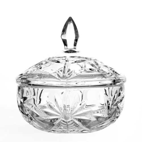 Снежинка, конфетница стеклянная с крышкой, 13,5x12,3 см
