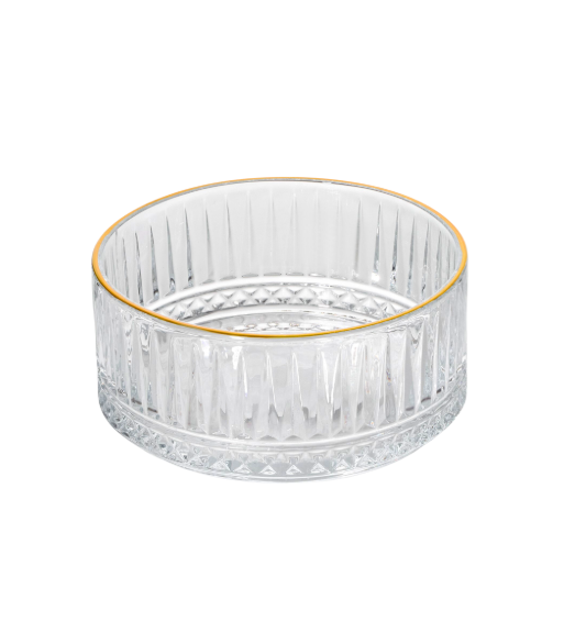 Стеклянный салатник, выполненный в дизайне с элементами рельефа, станет прекрасным украшением праздничного стола
