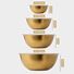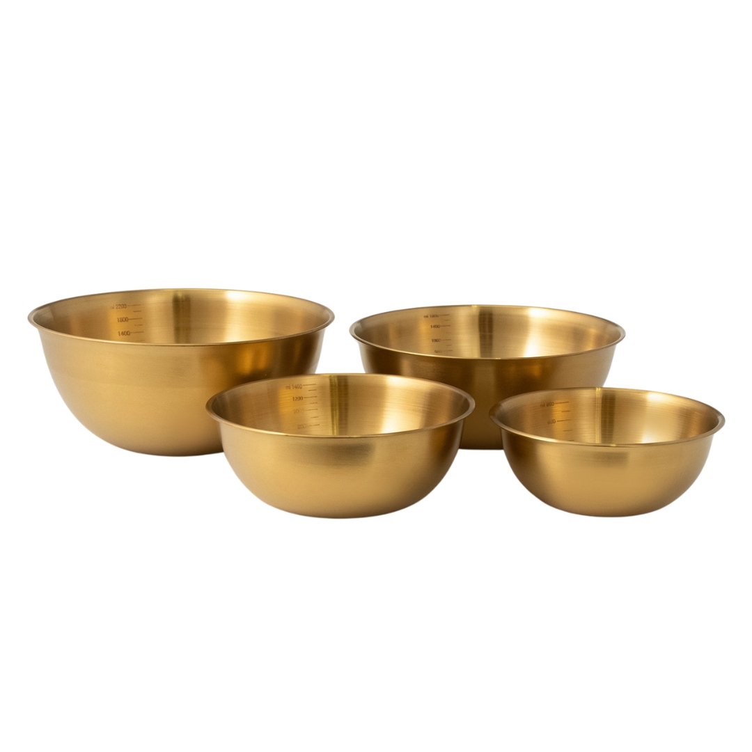 Этот стильный и практичный набор из четырех мисок из нержавеющей стали станет незаменимым помощником как для ежедневного использования, так и для праздничных застолий. Золотистый цвет добавит роскоши вашей сервировке, а мерная шкала – безупречной точности в приготовлении.