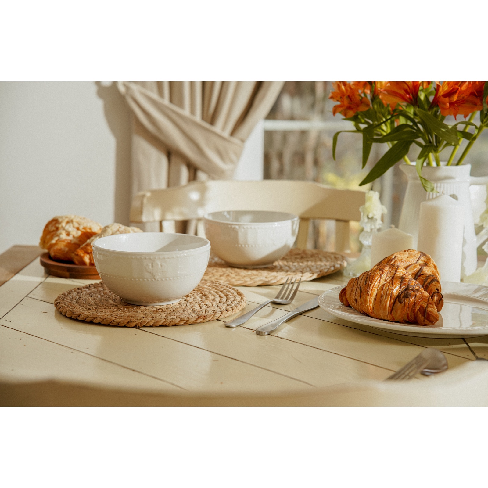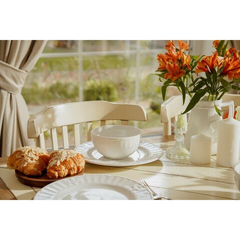 Серия «Винтаж Френч» воплощает в себе утонченную простоту и скромную изысканность французского кантри. Белоснежный плотный фарфор с аккуратным рельефным краем и деликатным орнаментом придает посуде легкую элегантность, избегая излишней вычурности. Этот стиль сочетает в себе утонченность и тепло, присущие французским деревенским домам, где царит спокойствие и уют.