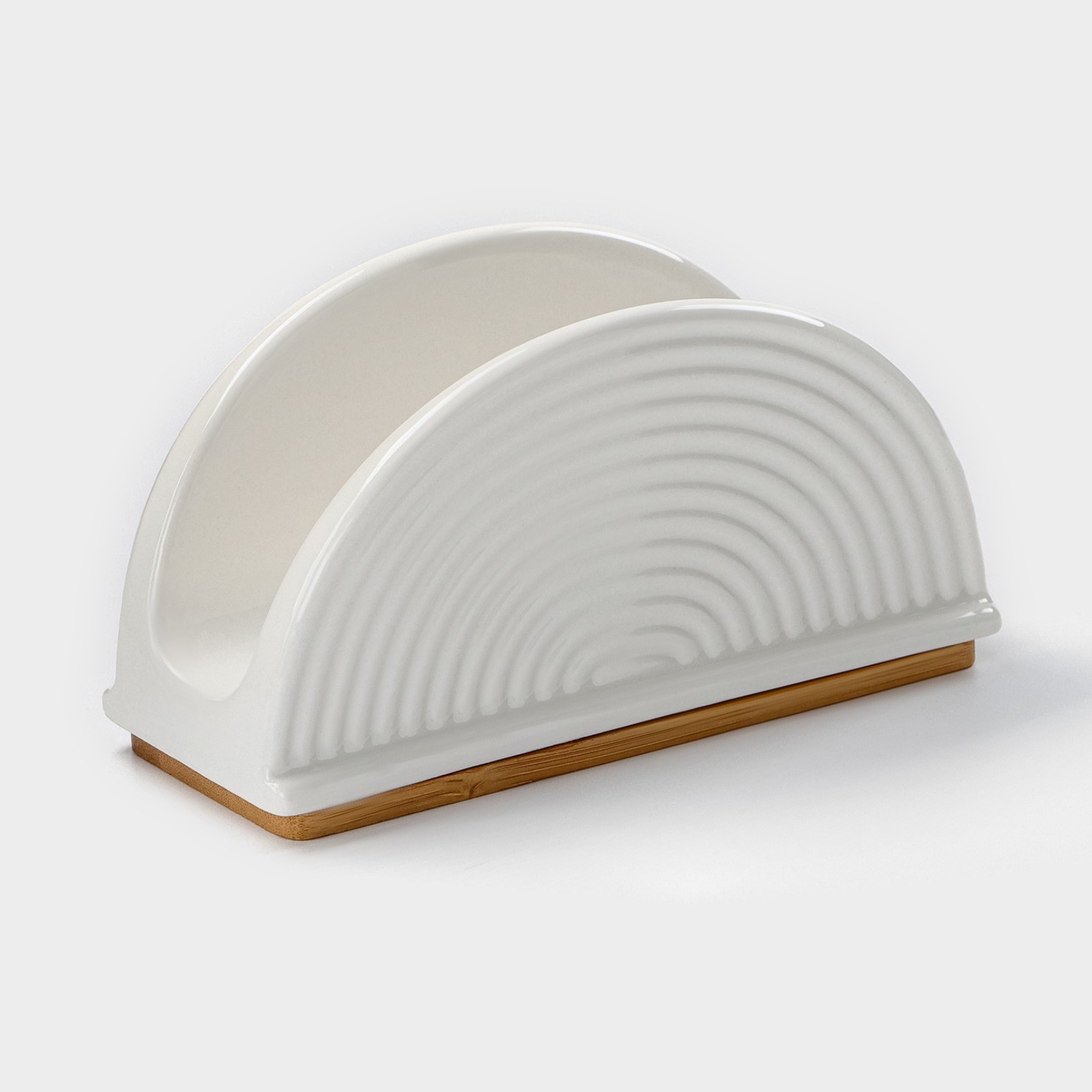 BellaTenero, салфетница фарфоровая на деревянной подставке, белый