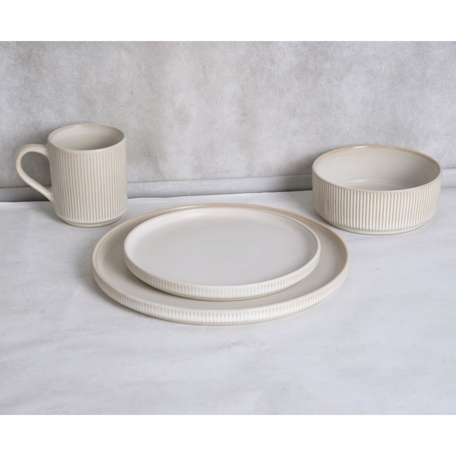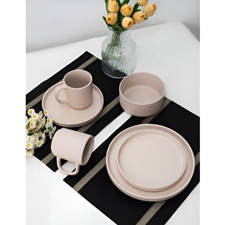 Столовый набор на 16 предметов представляет собой полный комплект посуды, предназначенный для сервировки стола на четыре персоны. Этот универсальный набор идеально подходит как для повседневного использования, так и для праздничных мероприятий, обеспечивая комфорт и эстетическое удовольствие от приема пищи. Керамика устойчива к механическим повреждениям, сохраняет свой первоначальный вид после многократного мытья в посудомоечной машине.
