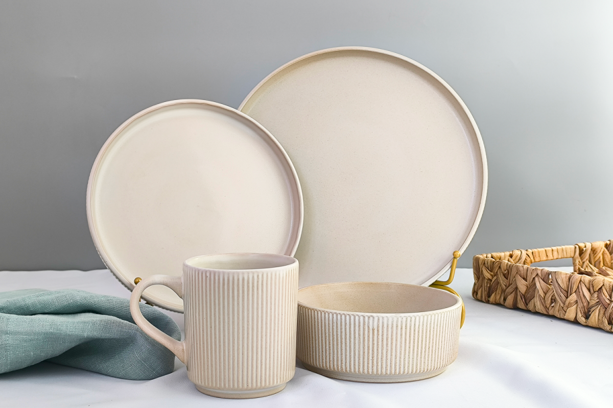 ДЮНА, набор столовой посуды на 4 персоны, 16 предметов, керамика, бежевый
