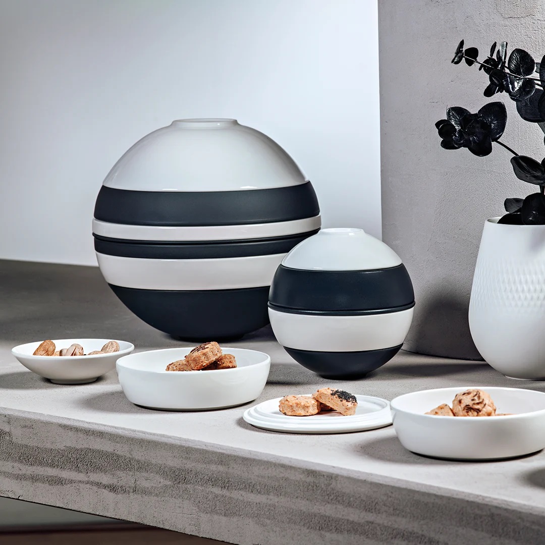 Все предметы набора La palla выполнены из высококачественного фарфора, обеспечивают не только элегантный и роскошный вид, но и долговечность, а также простоту в уходе. Но самое удивительное - это то, как все эти предметы легко объединяются и складываются в форму шара. Такой оригинальный подход к дизайну делает набор компактным и позволяет экономить пространство. Все изделия станут отличным выбором для тех, кто хочет удивить своих гостей и привнести нотку изысканности в любое праздничное мероприятие.