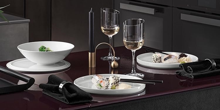 В комплект входят две плоские тарелки, которые идеально подойдут для подачи вторых блюд, две универсальные тарелки, два салатника для овощей, гарниров и бульонов, а также одно большое блюдо для эффектного представления ваших кулинарных шедевров.