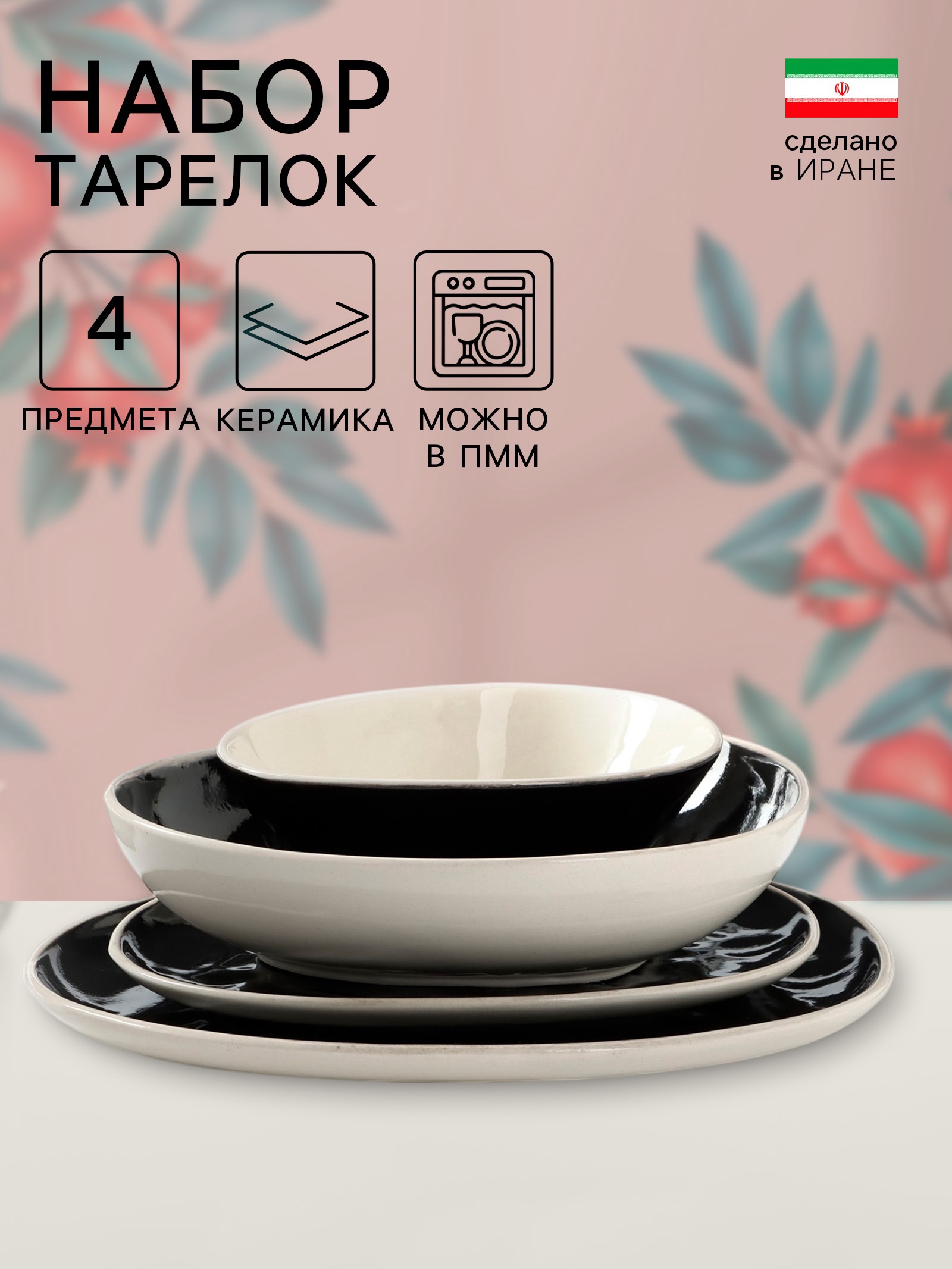 РЕСТОС БЛЭК, набор тарелок, 4 шт, керамика