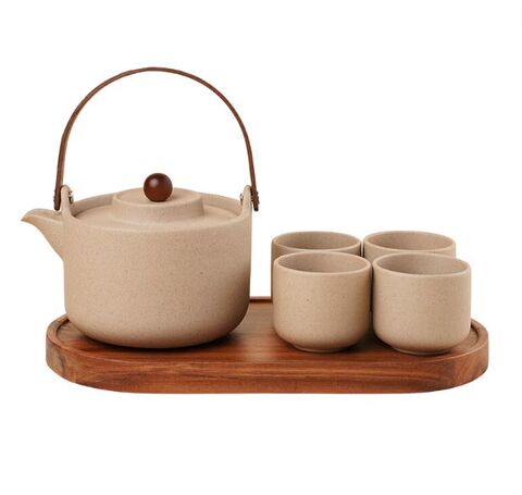 Сервиз "Стоун форест" от SL Home доступен в бежевом цвете на элегантной подставке. Объем чайника 650 мл позволяет налить достаточно напитка для комфортного употребления. Дополнительно в комплекте имеются чашки объемом 100 мл, что подойдет для небольших порций. Комплектация: Чайник- 1 шт; кружка- 4 шт; подставка- 1 шт