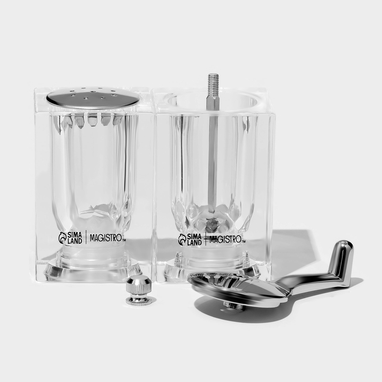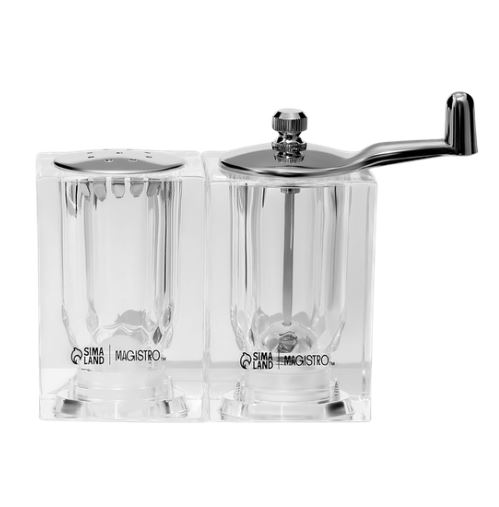 Этот стильный набор, включающий мельницу с удобной ручкой и солонку, позволит вам наслаждаться свежемолотыми специями в любое время. Изготовленные из прозрачного акрила, они не только практичны, но и элегантно смотрятся на любом столе. Их лаконичный дизайн и прямоугольная форма добавят изысканности вашей сервировке.