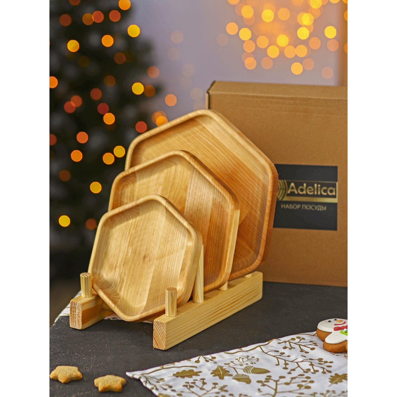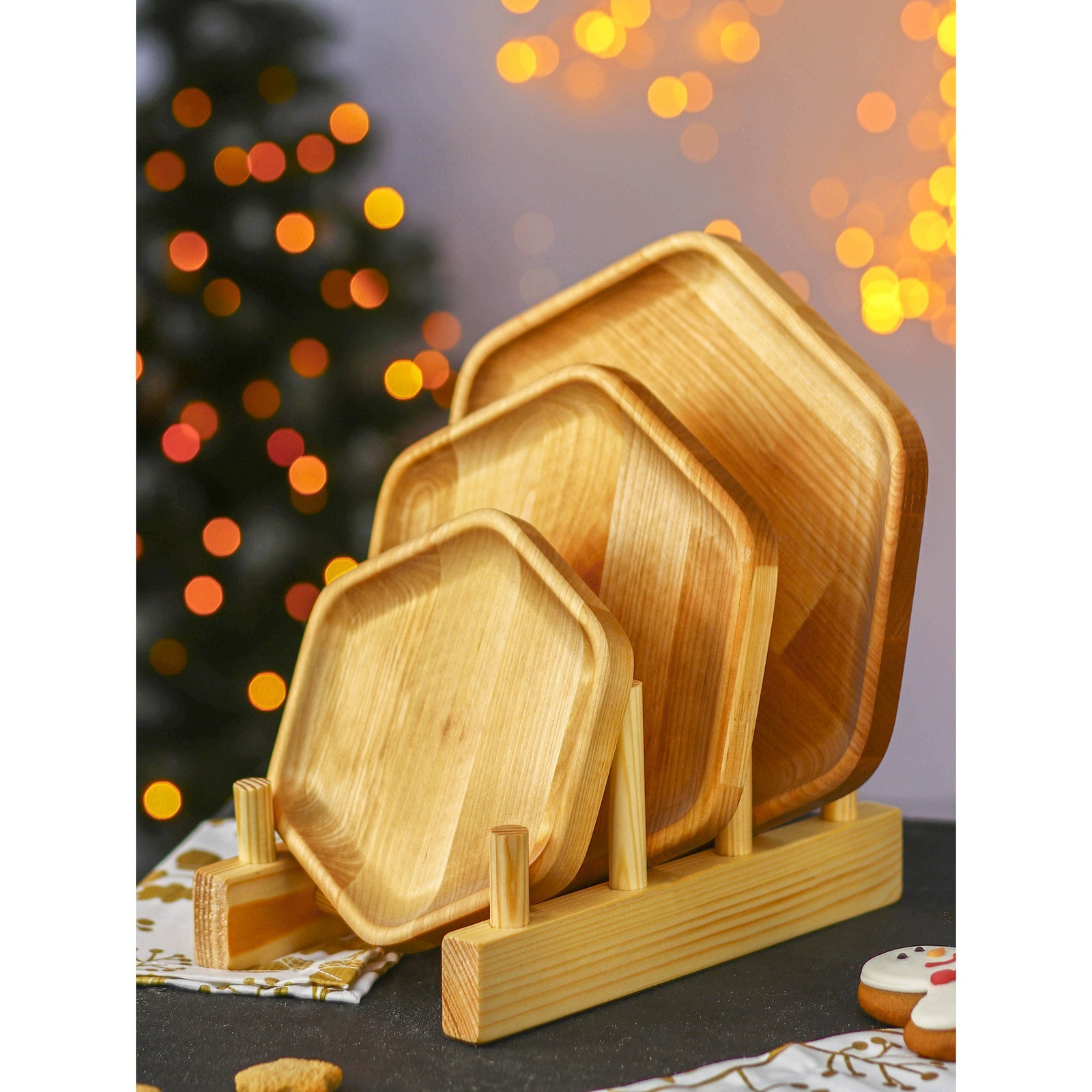 В набор входят тарелки 3 шт: d=24 см, d=20 см, d=16 см, подставка.